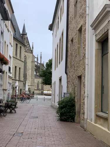 Osnabrück mit seinen rund 160.000 Einwohnern ist die drittgrößte Stadt Niedersachsens, die vor mehr als 1.200 Jahren von Karl dem Großen gegründet wurde und die einzige Stadt in Deutschland ist, die in einem Naturpark liegt. Denn der 1.500 Quadratmeter große Natur- und Geopark „TERRA.vita“ umgibt die Stadt und reicht bis ins Stadtgebiet hinein. Besonders die Altstadt von Osnabrück zeugt von ihrer bewegten Vergangenheit, in der es 1648 zu einem welthistorischen Ereignis kam, als auf der Rathaustreppe am 25. Oktober nach 5 Verhandlungsjahren und insgesamt 1.400 Verhandlungstagen der europäischen Gesandten der Westfälische Frieden verkündet wurde. Damit wurde der Dreißigjährige Krieg in Deutschland und der Achtzigjährige Unabhängigkeitskrieg der Niederlande beendet. Osnabrück wird seit dieser Zeit auch als Friedensstadt bezeichnet. Das Tor zu dieser geschichtsträchtigen Altstadt ist das Waterloo-Tor, das lokal nur Heger Tor genannt wird. Von hier aus sind es nur ein paar Schritte entlang der Kopfstein gepflasterten Gassen mit ihren vielen Geschäften und urigen Kneipen bis zum Marktplatz, dem Herz der Altstadt. Dieser wird von dem über 500 Jahre alten Ensemble bestehend aus dem spätgotischen Rathaus mit Friedenssaal, der Stadtwaage und der St. Marien Kirche sowie den farbenfrohen Bürgerhäusern mit ihren Treppengiebeln eingerahmt. In unmittelbarer Nähe befindet sich auf dem Platz des Westfälischen Friedens der Bürgerbrunnen, der die bedeutendsten Ereignisse der Stadtgeschichte eindrucksvoll darstellt. Nur einen Katzensprung entfernt liegt der mehr als 1000 Jahre alte mittelalterliche Dom St. Peter, die Domschatzkammer, das Diözesanmuseum und das Gymnasium Carolinum, das zu einer der ältesten Schulen Deutschlands zählt. Die Osnabrücker Altstadt mit ihren verwinkelten Gassen, den historischen Gebäuden aus dem Rokoko sowie der Fachwerkbauweise, den alten Kirchen, zahlreichen Cafés, Restaurants und kunsthandwerklichen Geschäften, lädt zum Durchatmen, Genießen und Entschleunigen in entspannter und trotzdem lebendiger Atmosphäre ein.