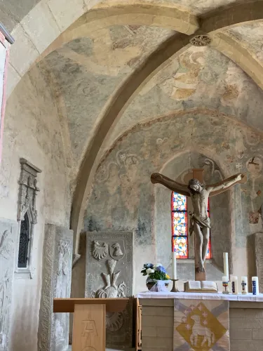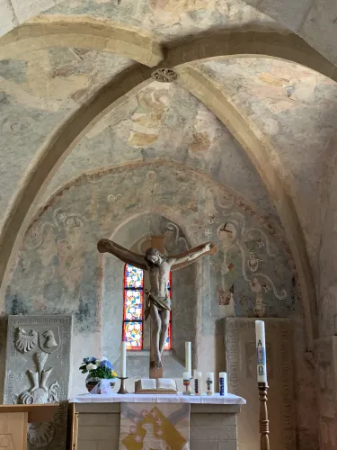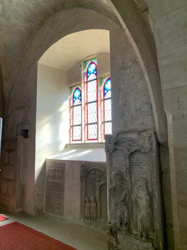 Über einem kleinen Dorf namens Heinsheim, einem Ortsteil der baden-württembergischen Stadt Bad Rappenau, thront auf einem Höhenzug eine Bergkirche aus dem 9. Jahrhundert. Diese Bergkirche zählt zu den ältesten Landkirchen in Südwestdeutschland und wurde auf einem Druidenplatz errichtet. Druidenplätze blicken auf eine Jahrtausende alte Tradition zurück. So wurden besondere Berge oder Quellen als Kultstätten genutzt, von denen eine magische Energie ausging, die eine vorteilhafte Wirkung für den Körper, den Geist und die Seele hatten. Ein solcher Ort war der Höhenzug über Heinsheim. Hier wurde einst eine hölzerne Taufkapelle an einer heute noch fließenden Brunnenquelle erbaut und später durch einen einschiffigen Steinbau mit flacher Decke und imposanten Turm im romanischen Baustil errichtet. Die Bergkirche, die sich 110 Stufen über dem Ort Heinsheim erhebt, wurde erstmals im Jahr 965 im Cartularium Wormatiense schriftlich erwähnt. Doch archäologische Funde bezeugen ihre Nutzung bereits zu Zeiten der Römer und ab dem 7./8. Jahrhundert. Die Bergkirche ist dem Heiligen St. Hilarius geweiht und war vom hohen Mittelalter bis zum Aussterben des Geschlechts der Herren von Ehrenberg 1674 deren Hauptkirche und Grablege. Im 18. und 19. Jahrhundert wurde die Kirche mehrfach renoviert. Schon von Weitem erblickte ich den quadratischen Turm der Kirche, die ich über ein schlichtes Holzportal betrat. Mein erster Blick fiel auf die Wand- und Deckenfresken im Chorraum, die im Jahr 1957 freigelegt wurden. Besonders beeindruckend war für mich das Wandfresko des Heiligen Christophorus, das aus dem Jahr 1280 stammt und 1963 zufällig bei einer Innenrenovierung entdeckt wurde. Im Kreuzgewölbe des Turms über dem Altar befinden sich die ältesten Fresken der Kirche, die vier Evangelistensymbole, die aus der Zeit um 1250 stammen. Ich bestaunte die Fresken der Seitenwände des Chors, die Christus auf dem Thron des Richters und auf dem Thron der Gnade zeigen. An der östlichen Rückwand des Chores befinden sich spätgotische Fresken aus dem Jahr 1500 mit den beiden Heiligen St. Hilarius und St. Maximinus in mittelalterlicher Bischofstracht mit Rittern von Ehrenberg auf ihren Wappen kniend. Auch die Grabplatten des Rittergeschlechts der Ehrenberg konnte ich an den Wänden des Chorraums bewundern. Im Jahr 1959 wurde der aktuelle schlichte Steinaltar aufgestellt und dabei wurden in 1 Meter Tiefe sechs alte Rittergruften gefunden. Die Grabplatten stammen aus der Zeit von etwa 1400 bis 1700. Im Kirchenschiff befindet sich das größte Grabdenkmal für den Ritter Johann Heinrich von Ehrenberg und seiner Frau Margaretha mit ihren acht Kindern. Beeindruckend war für mich auch die gotische Taufkapelle mit handgeschnitzten Christuskopf aus Basalt und schönen Ornamenten auf der Außenseite sowie Sterne und Flammen am Innendach mit dem Haupt Johannes des Täufers. Auf der Westseite des Langhauses gegenüber dem Steinaltar befindet sich die Orgelempore. Auch die bunten Mosaikfenster sind absolut sehenswert und zauberten ein herrliches Lichtspiel im Innenraum der Kirche. Selbst die Außenansicht der Kirche ist ein echter Hingucker mit ihren massiven Wehrmauern und dem angrenzenden Friedhof mit seinen großen Grabsteinen, der jedoch ab 1777 nicht mehr genutzt wurde. Darüber hinaus entdeckte ich die Brunnenquelle, die in fränkischer Zeit ein Missions- und Taufplatz war. Die idyllische Lage der Bergkirche mit der Brunnenquelle, dem massiven Steinbau und dem Friedhof hatte etwas Mystisches an sich und übte einen besonderen Reiz auf mich aus. Ich hatte noch nie einen so alten Sakralbau gesehen, der eine unglaubliche Energie ausstrahlte. Die Bergkirche Heinsheim ist eine besondere Kirche, die von der evangelischen Kirchengemeinde im Wechsel mit der Schlosskapelle in Heinsheim bis heute für Gottesdienste genutzt wird. Ich kam an diesem Ort zur Ruhe und konnte positive Energie tanken und positive Gedanken finden. Denn wie sagte schon Buddha: „Was Du denkst, bist Du. Was Du bist, strahlst Du aus. Was Du ausstrahlst, ziehst Du an.“