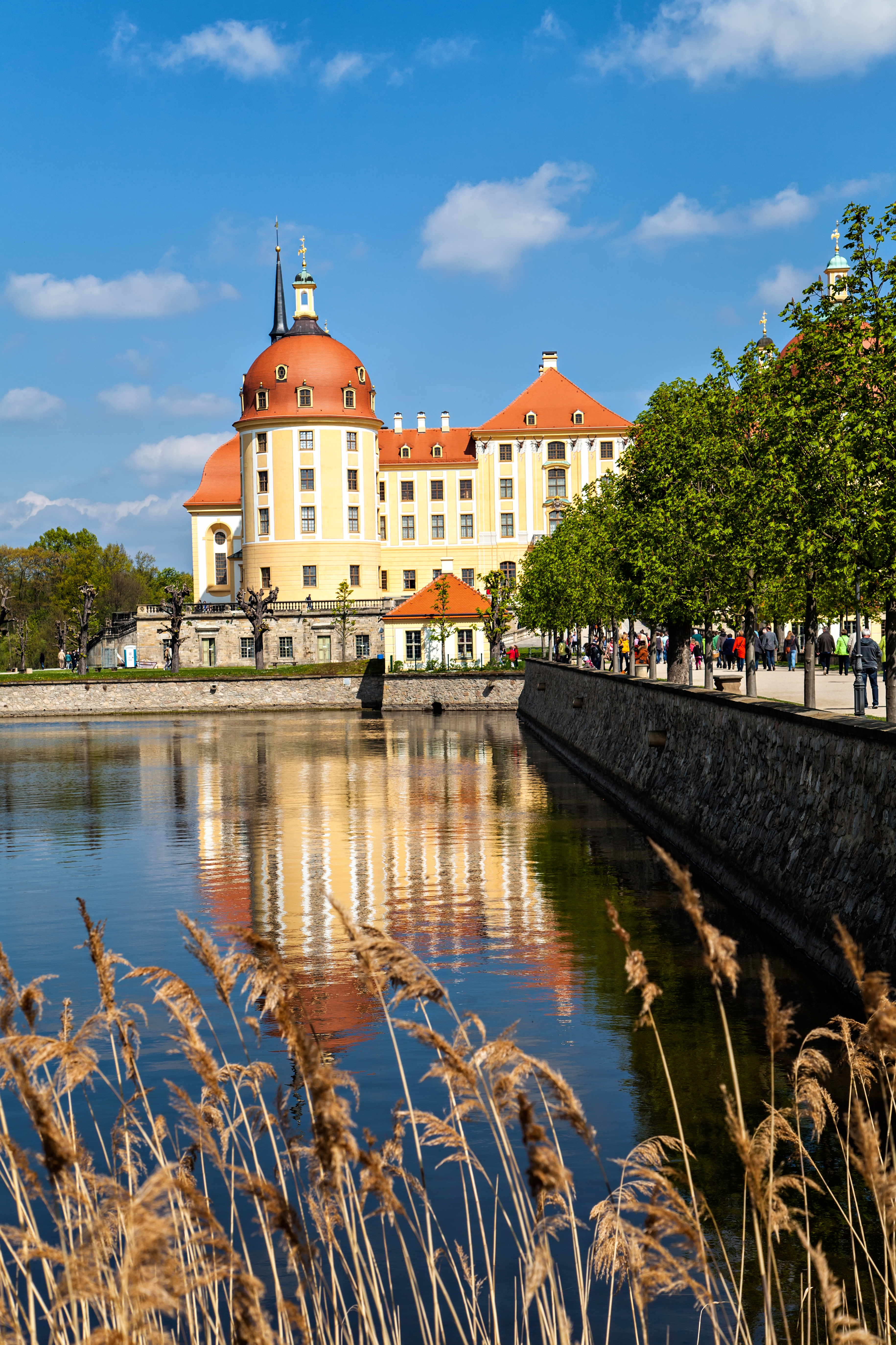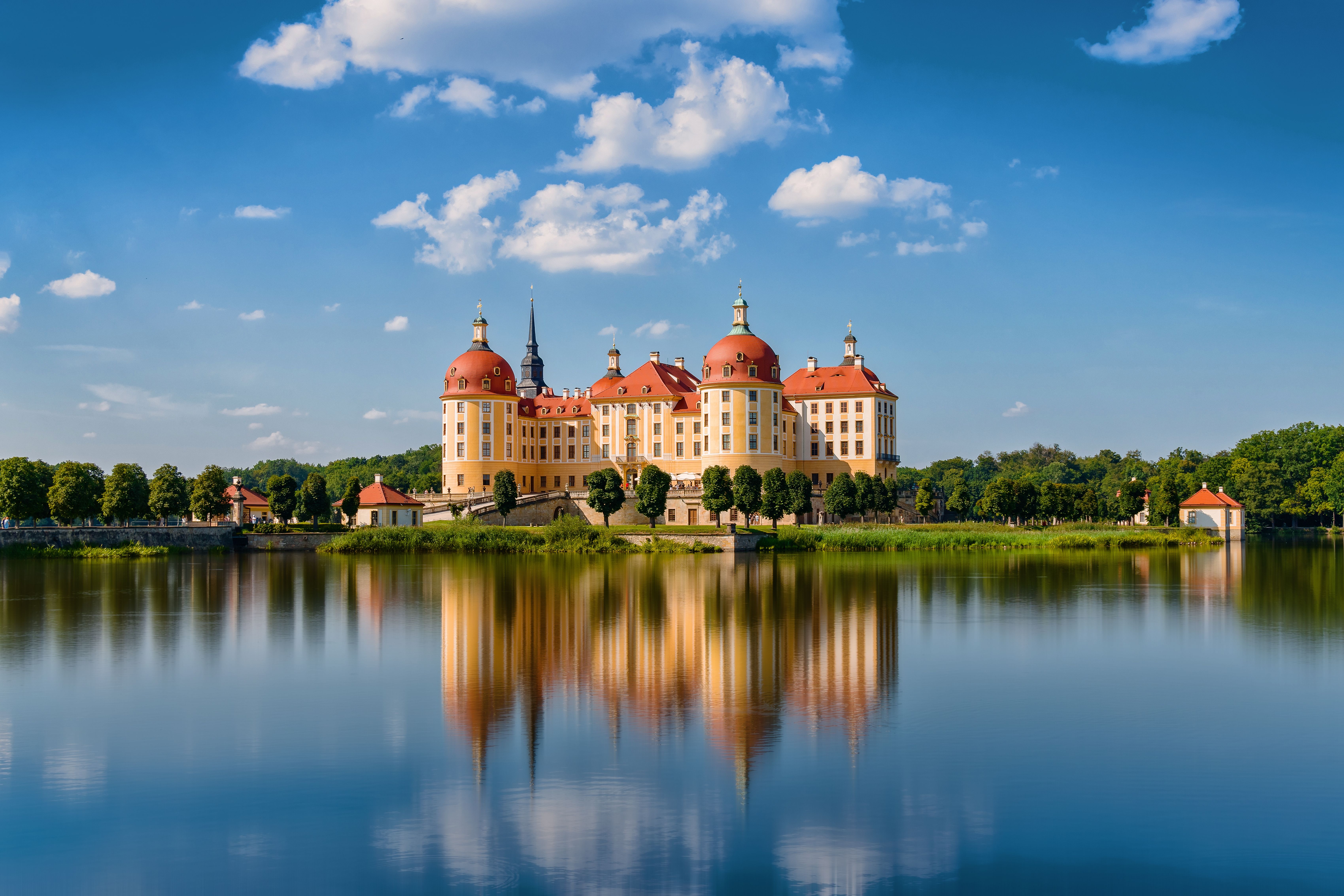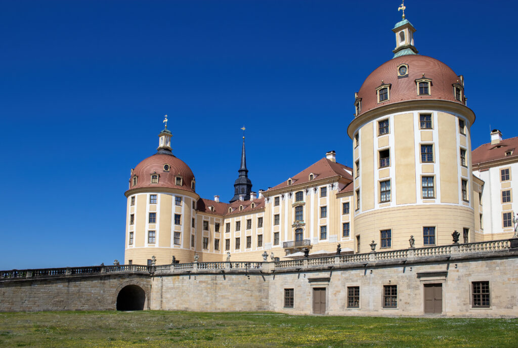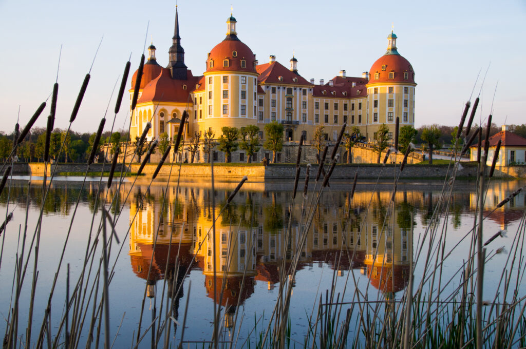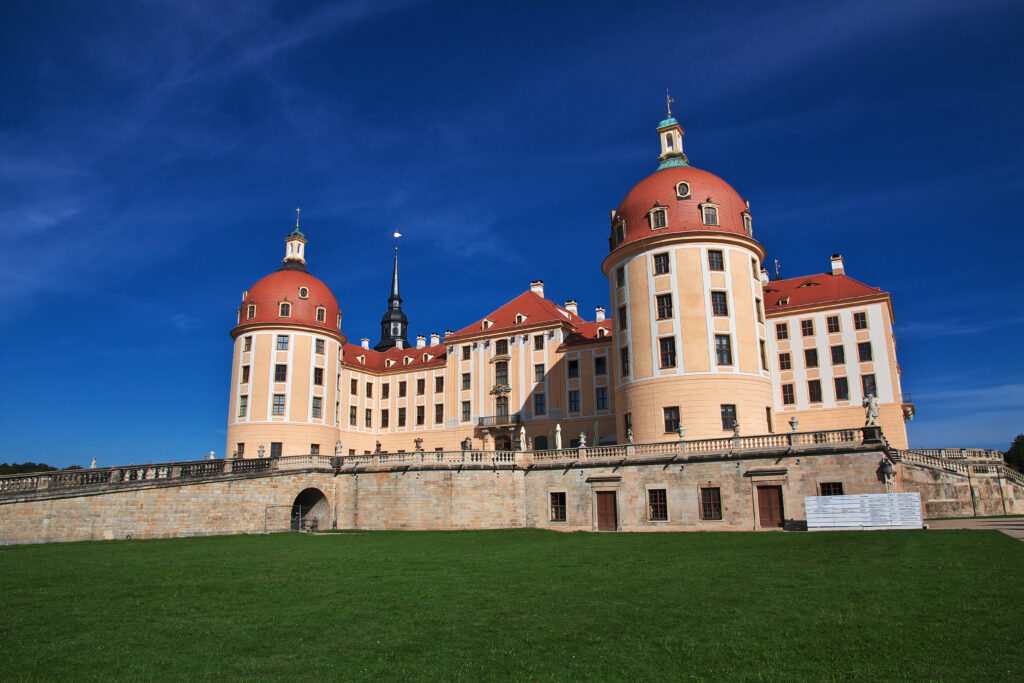 Architektonische Wunderwerke. Die Integration des Schlosses in die Landschaft ist ein Wunderwerk, mit seiner künstlichen Insel im Schlossweiher, den weitläufigen Kanälen und dem eleganten Hirschhaus im Schneisensystem, das für die Parforcejagd genutzt wird. Diese Merkmale schaffen eine nahtlose Verbindung zwischen Natur und Architektur und verstärken die mystische Atmosphäre, die Moritzburg durchdringt.