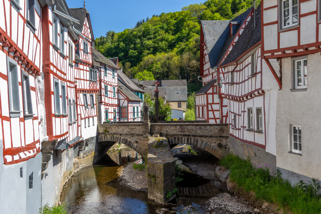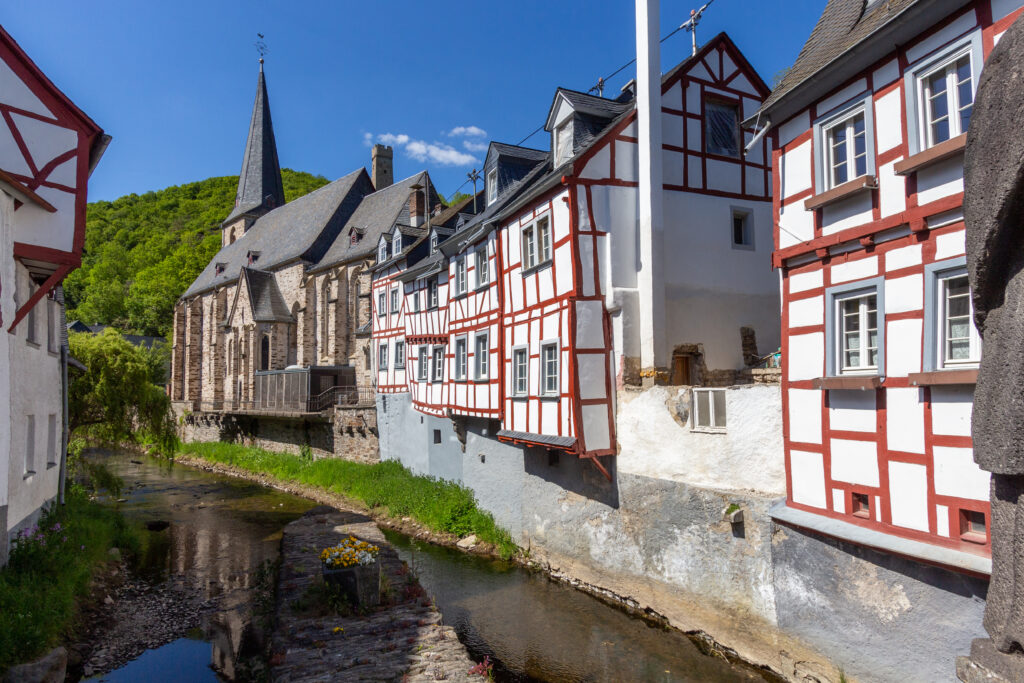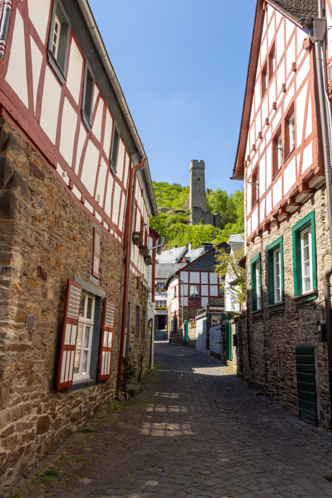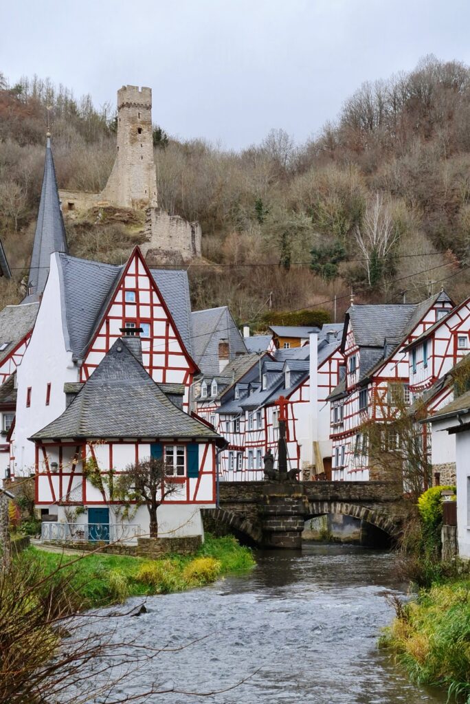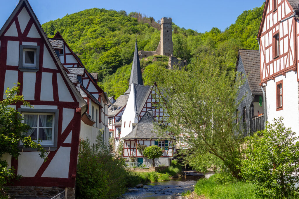 Eingebettet in das malerische Elztal in Rheinland-Pfalz liegt das bezaubernde Dorf Monreal. Über diesem historischen Weiler thronen die eindrucksvollen Ruinen der Löwenburg und der Philippsburg, Überbleibsel einer längst vergangenen Zeit. Die ältesten Siedlungsspuren hier reichen bis in vorchristliche Zeiten zurück, aber das Dorf taucht erstmals 1193 in Aufzeichnungen auf, damals unter dem Namen „Cunisberch” (Königsberg). Zu Beginn des 13. Jahrhunderts dehnten die Grafen von Virneburg, getrieben von Ehrgeiz und strategischen Überlegungen, ihren Einfluss auf die kleine Siedlung aus und gaben ihr den französischen Namen „Monroial”, aus dem sich schließlich der heutige Name Monreal entwickelte.