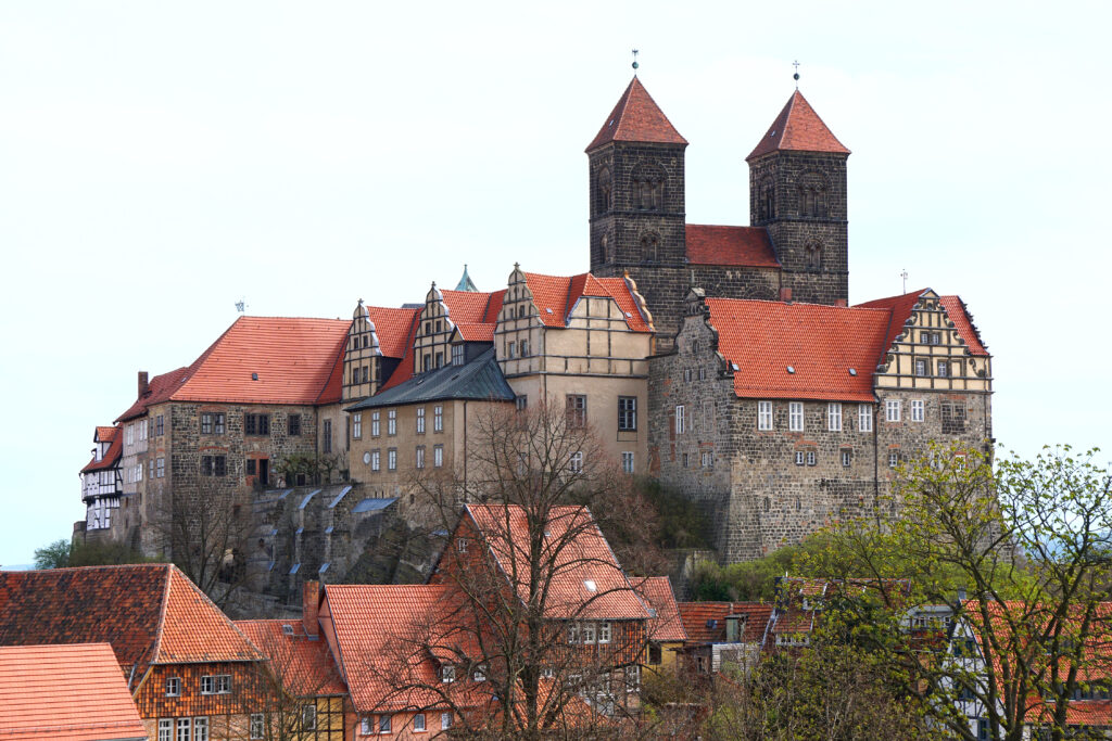 Der historische Teppich – Die Ursprünge Quedlinburgs lassen sich über ein Jahrtausend zurückverfolgen. Erstmals erwähnt wurde die Stadt 922 n. Chr. in einer Urkunde von König Heinrich I. Ihre Bedeutung stieg jedoch, als König Heinrichs Witwe Mathilde hier 936 n. Chr. ein Kloster gründete. Dieses Kloster wurde während der ottonischen Dynastie zu einem bedeutenden religiösen und kulturellen Zentrum. Das bleibende Erbe dieser Zeit verkörpert die Stiftskirche St. Servatius, ein Meisterwerk der Romanik, das die Stadt krönt und die Gräber Heinrichs I. und anderer ottonischer Herrscher beherbergt.