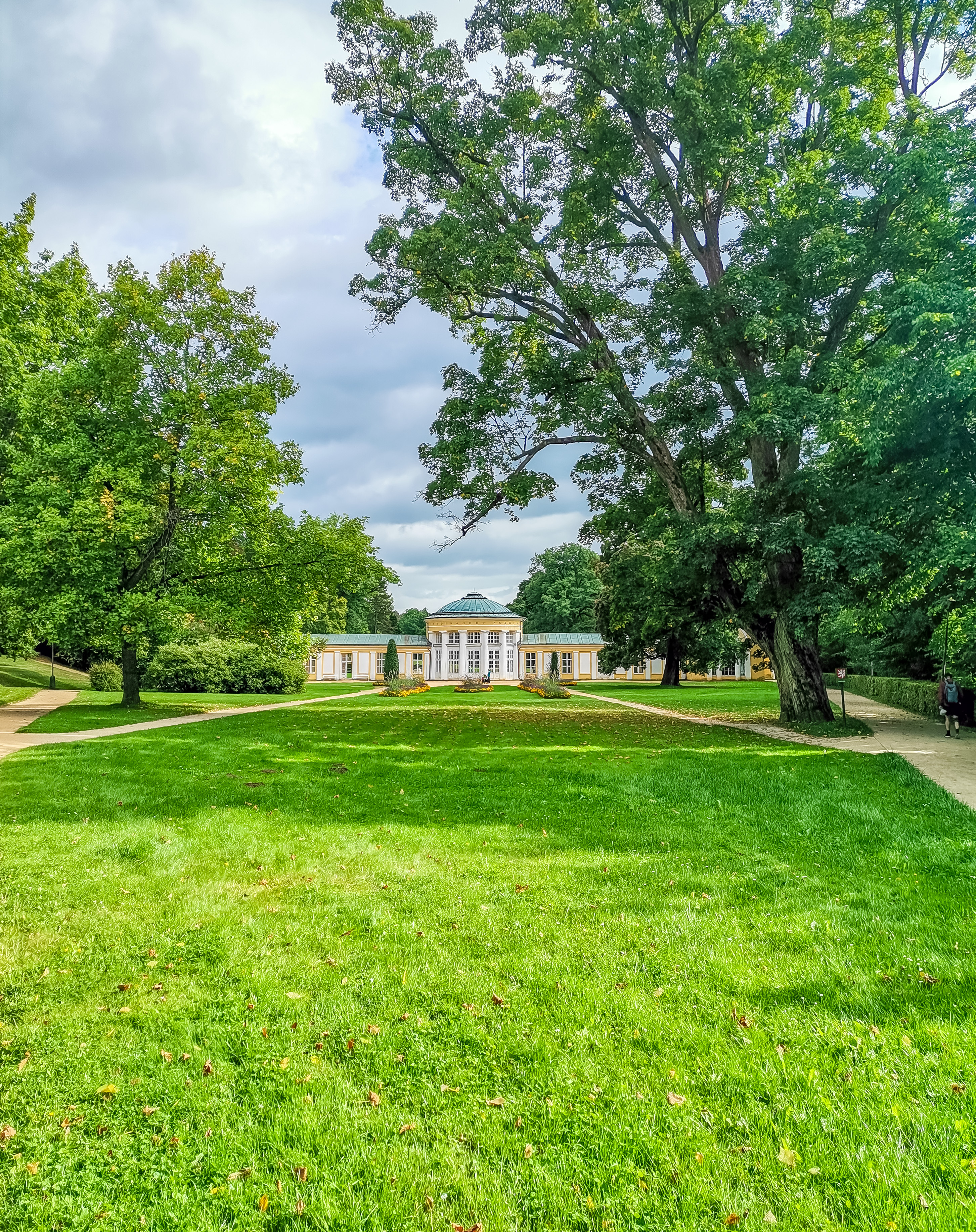 Ein mit kaiserlichen Fäden gewebter Wandteppich – Ein Besuch in Marienbad ist wie eine Reise in die Vergangenheit. Die Straßen sind gesäumt von prächtigen neoklassizistischen Gebäuden, von denen jedes einzelne die Vergangenheit widerhallt. Das bekannteste davon ist die Kolonnade, ein prächtiges Bauwerk aus dem Jahr 1889, das von der Pracht der Stadt während der Zeit des Österreichisch-Ungarischen Reiches zeugt. Dieses architektonische Wunderwerk, geschmückt mit aufwendigen Fresken, diente einst als gesellschaftlicher Treffpunkt, an dem sich die High Society unter seinen opulenten Bögen versammelte.