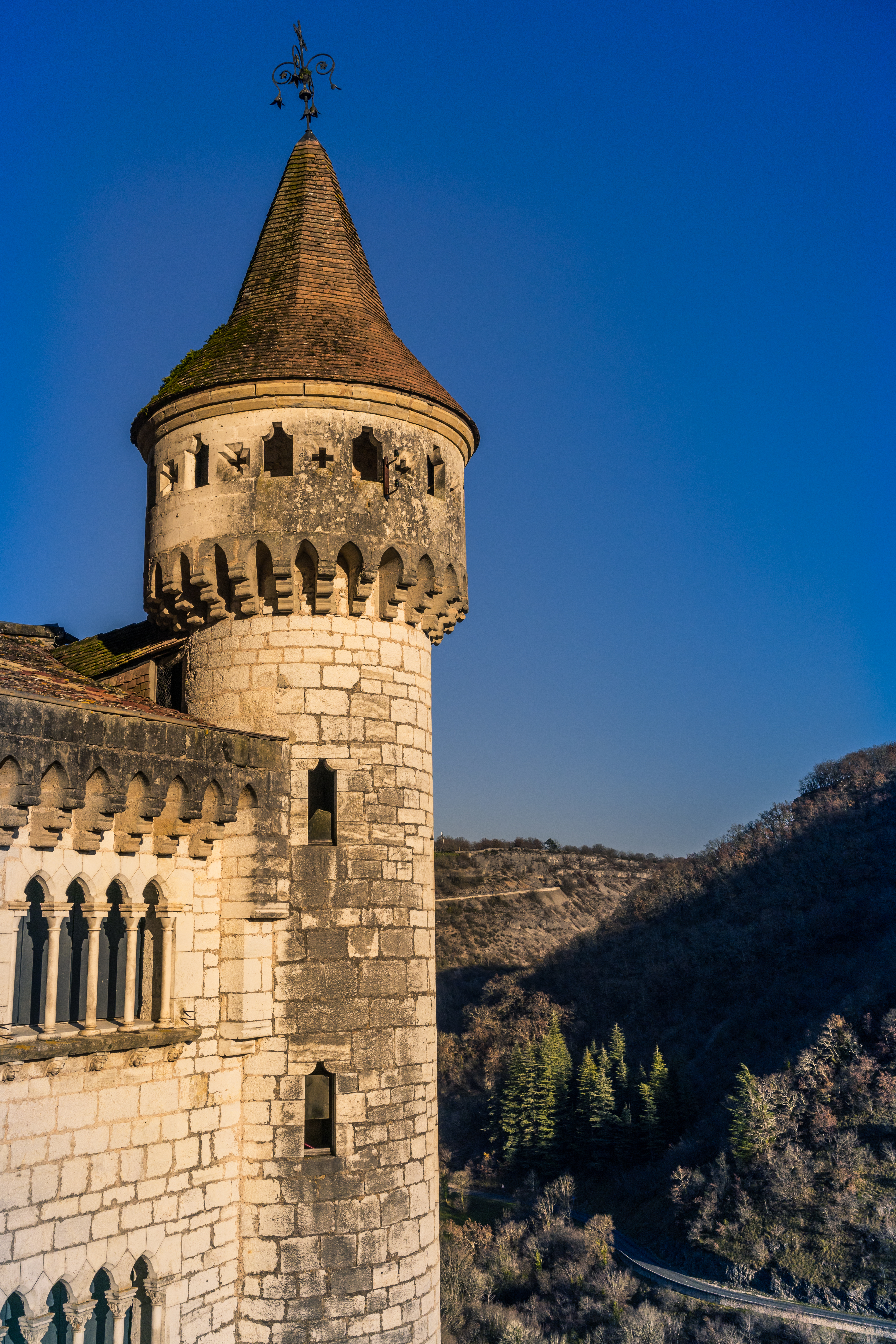 Vom Schloss aus gelangen Besucher zu sieben in den Fels gehauenen Heiligtümern, von denen jedes seine eigene Geschichte und religiöse Bedeutung hat. Unter diesen ist die Chapelle Notre-Dame, Heimat der Schwarzen Madonna, die am meisten verehrte. Das reich verzierte Innere der Kapelle und die aufwendigen mittelalterlichen Fresken geben einen Einblick in die künstlerische Meisterschaft dieser Epoche.