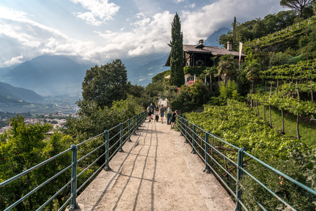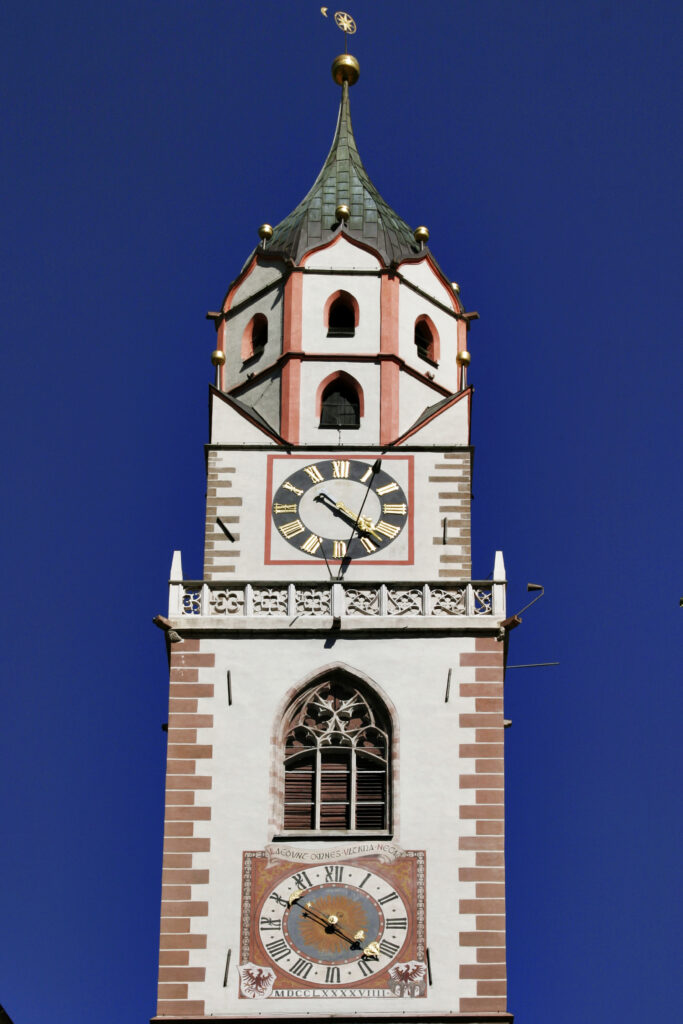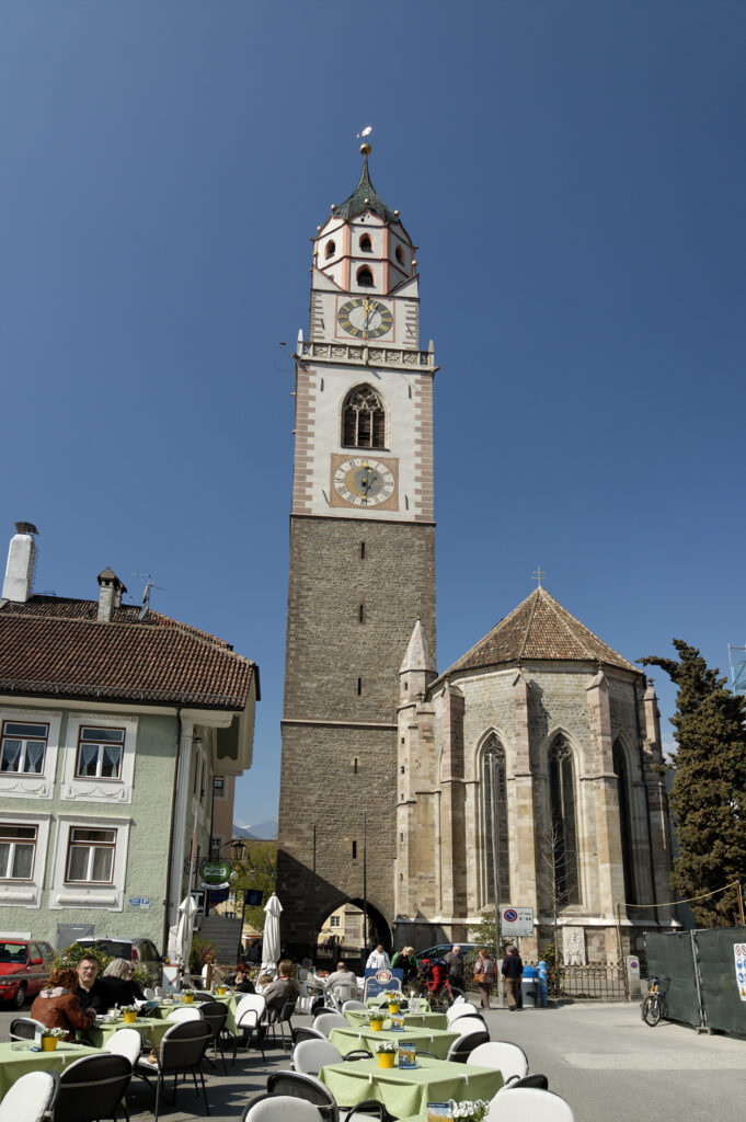 Ein historischer Teppich – Die Geschichte Merans ist so reich und vielfältig wie seine Landschaft. Die Stadt wurde erstmals im 9. Jahrhundert erwähnt und diente als wichtiger mittelalterlicher Handelsposten. Ihre strategisch günstige Lage am Zusammenfluss von Etsch und Passer machte sie zu einem geschäftigen Knotenpunkt für Händler und Reisende. Im Laufe der Jahrhunderte gehörte Meran zu verschiedenen Reichen und Königreichen, darunter dem Heiligen Römischen Reich und der Österreichisch-Ungarischen Monarchie, bevor es nach dem Ersten Weltkrieg schließlich Teil Italiens wurde. Bei einem Spaziergang durch die Altstadt von Meran ist es unmöglich, sich der architektonischen Pracht zu entziehen. Die gotische St.-Nikolaus-Kirche mit ihrem hoch aufragenden Glockenturm stammt aus dem 15. Jahrhundert und zeugt noch heute vom mittelalterlichen Wohlstand der Stadt. In der Nähe steht das Kurhaus, ein Meisterwerk des Jugendstils, das als Symbol für Merans Ruf als Kurort im 19. Jahrhundert gilt und europäische Adelige und Künstler gleichermaßen anzog.