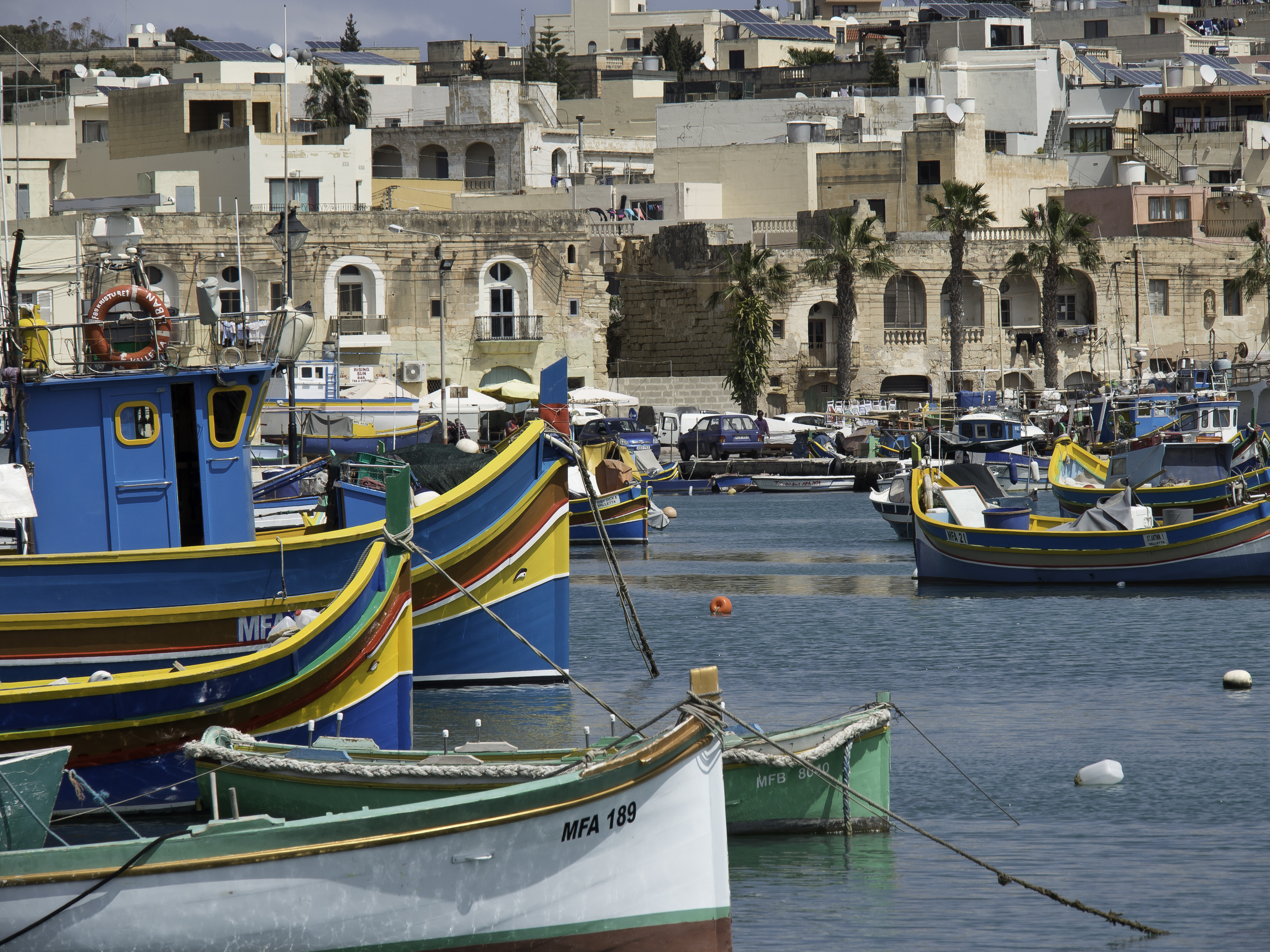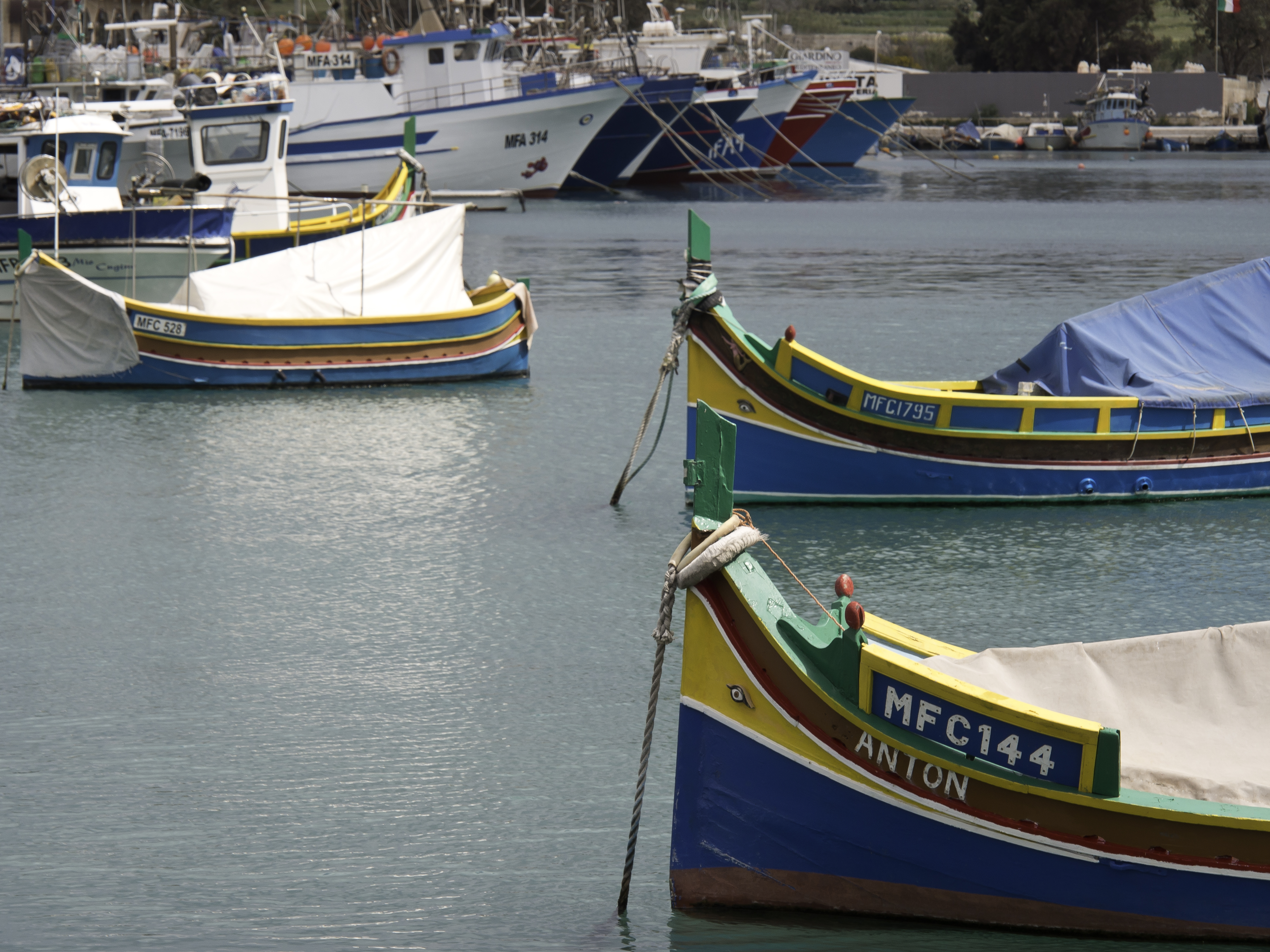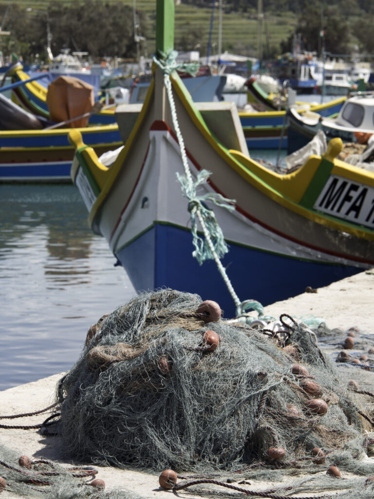 Die bunten Luzzu-Boote: Ein Symbol des Dorfes – Die Luzzu, traditionelle maltesische Fischerboote, sind sowohl funktional als auch kulturell bedeutsam. Sie sind in leuchtenden Farben wie Blau, Rot, Gelb und Grün gestrichen und fast immer mit dem „Auge des Osiris” oder „Auge des Horus” verziert. Dieses Symbol soll die Fischer vor den Gefahren des Meeres schützen. Die Ursprünge dieser Tradition reichen bis in die Zeit der Phönizier zurück, als Glaube und Seefahrt eng miteinander verbunden waren.