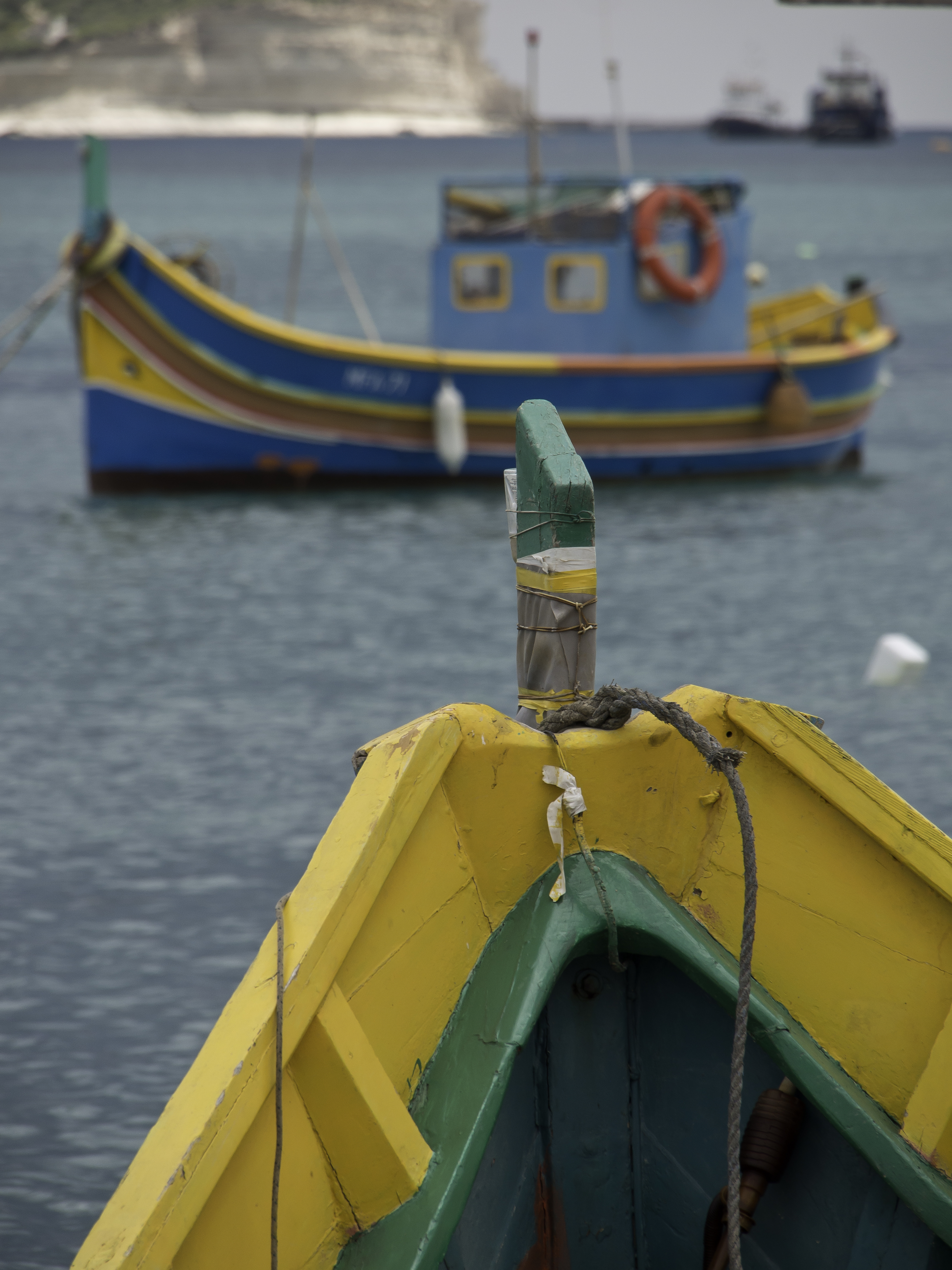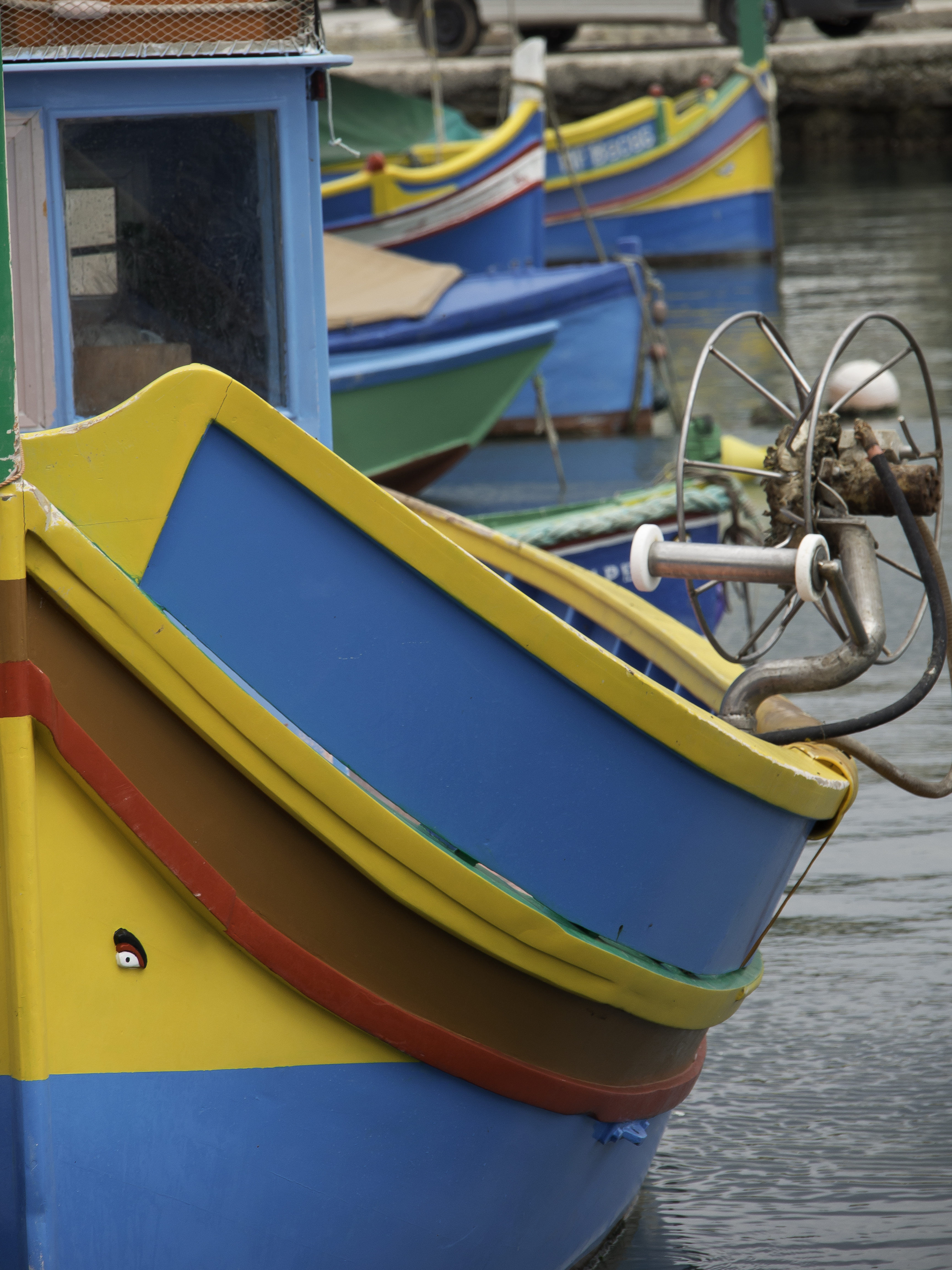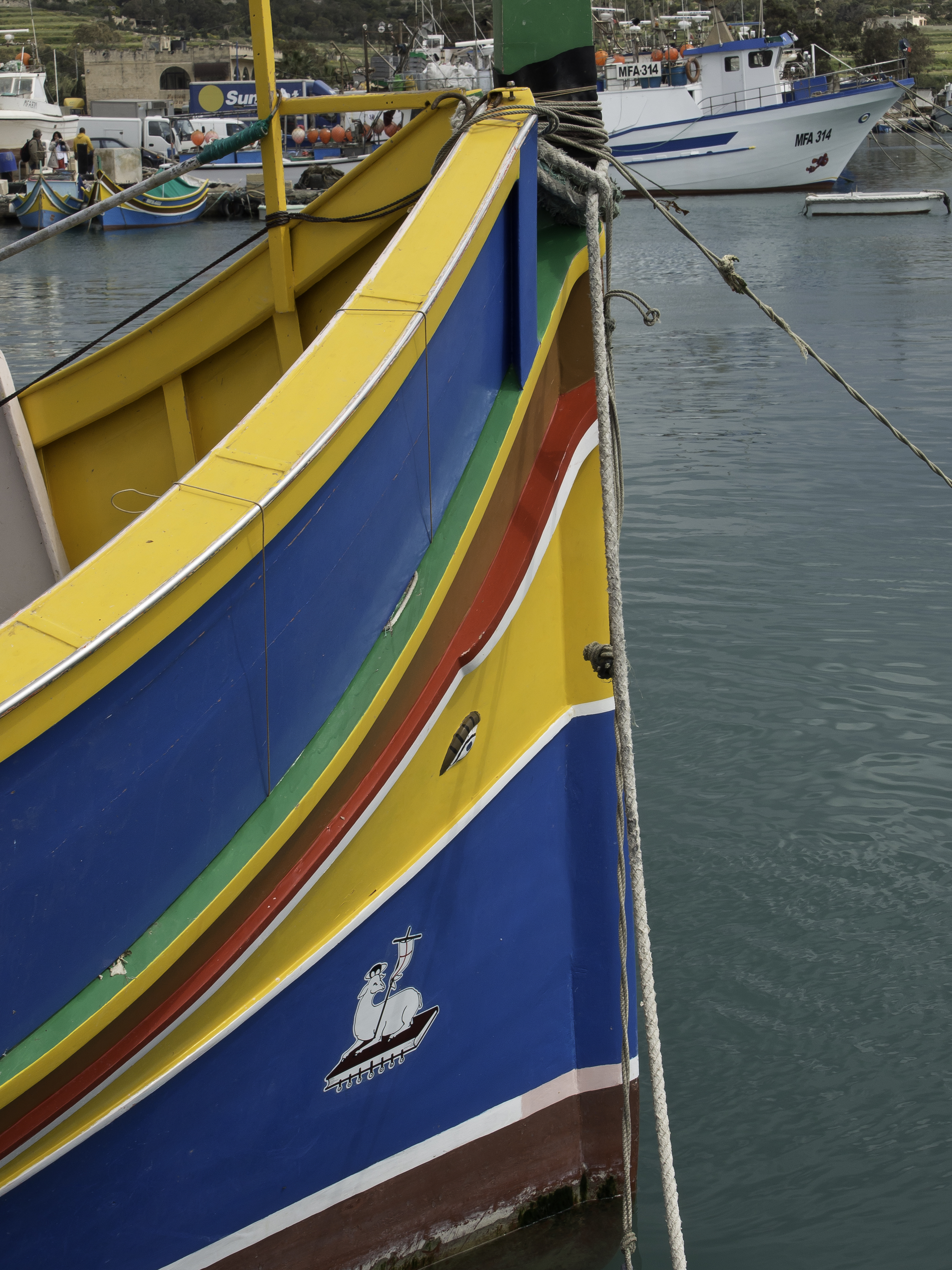Die bunten Luzzu-Boote: Ein Symbol des Dorfes – Die Luzzu, traditionelle maltesische Fischerboote, sind sowohl funktional als auch kulturell bedeutsam. Sie sind in leuchtenden Farben wie Blau, Rot, Gelb und Grün gestrichen und fast immer mit dem „Auge des Osiris” oder „Auge des Horus” verziert. Dieses Symbol soll die Fischer vor den Gefahren des Meeres schützen. Die Ursprünge dieser Tradition reichen bis in die Zeit der Phönizier zurück, als Glaube und Seefahrt eng miteinander verbunden waren.