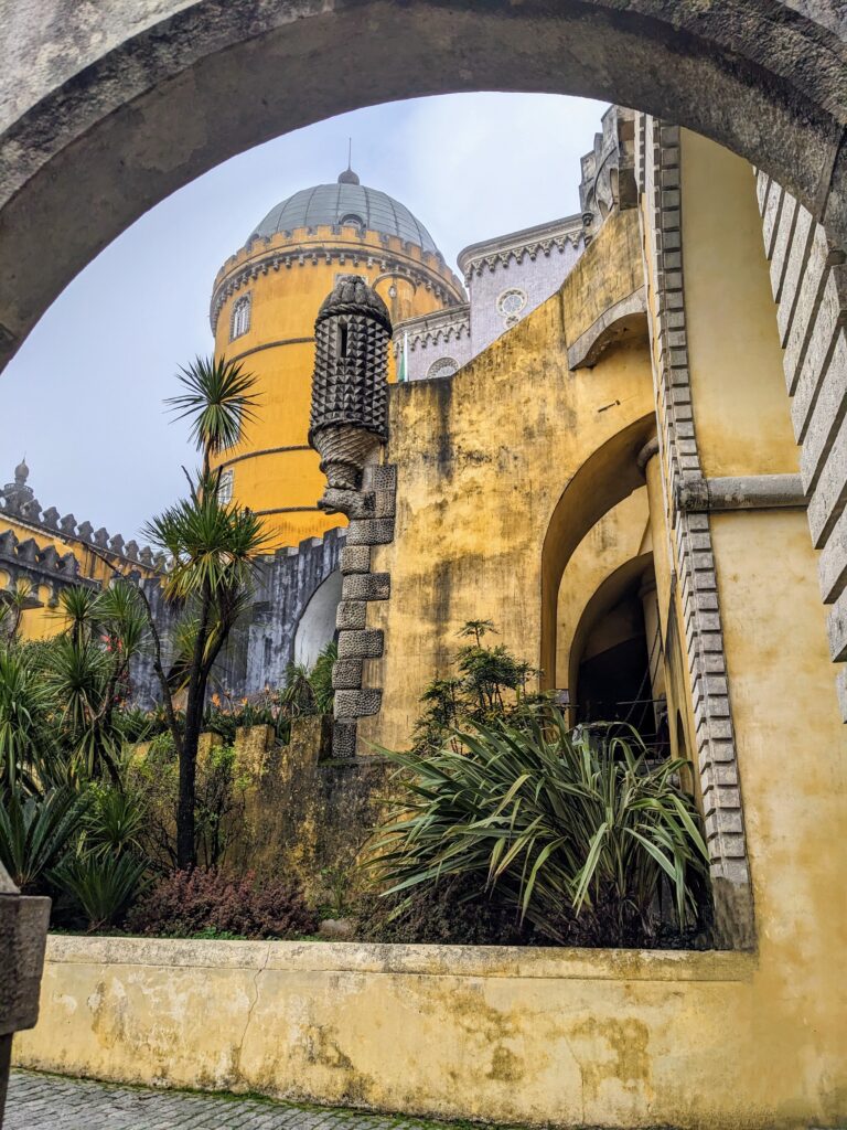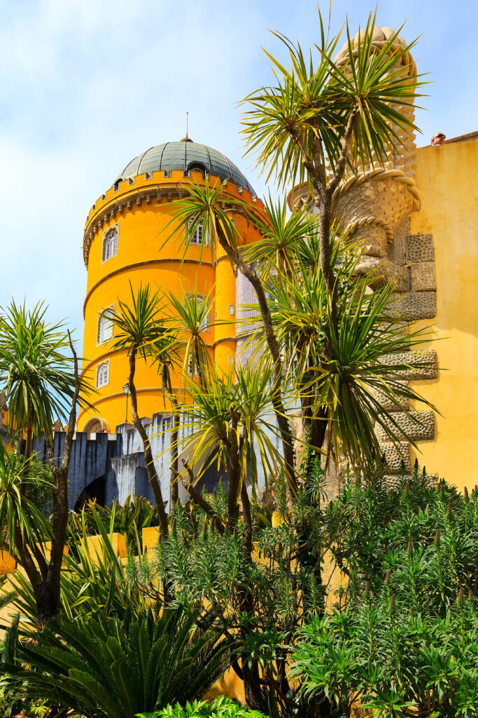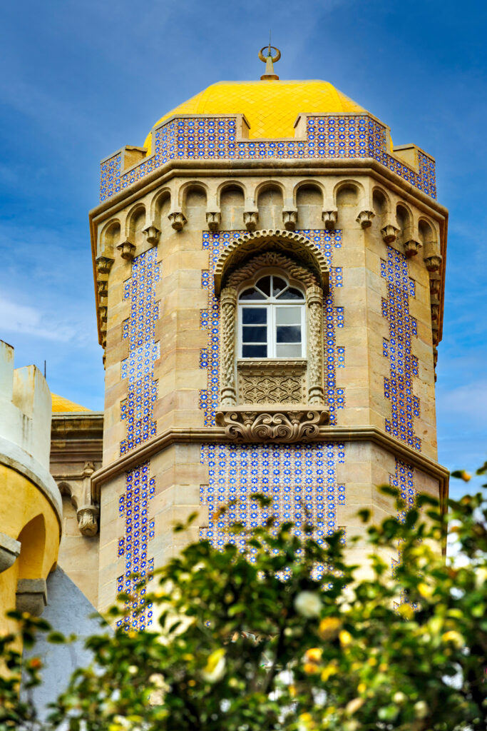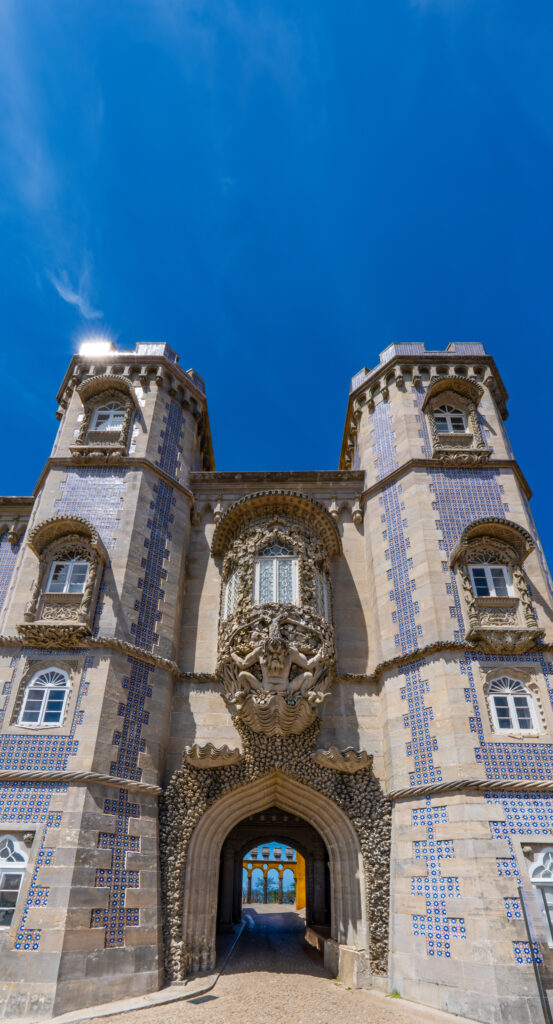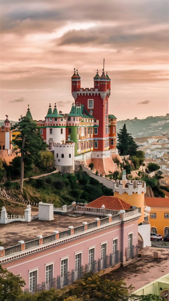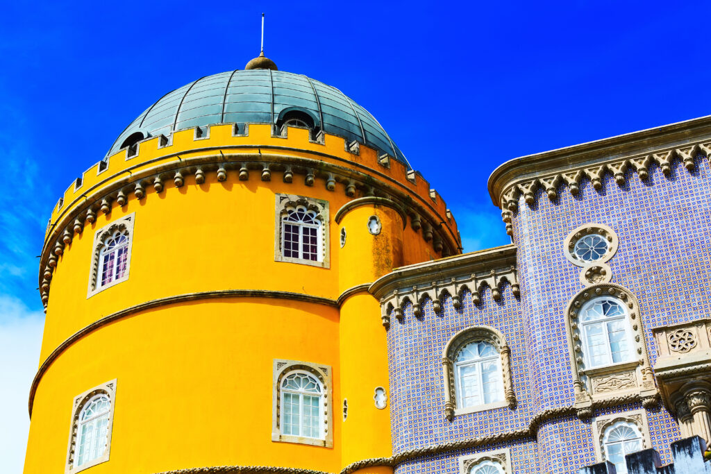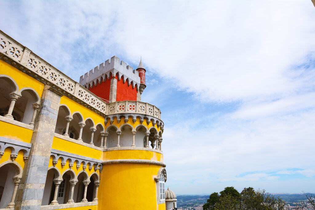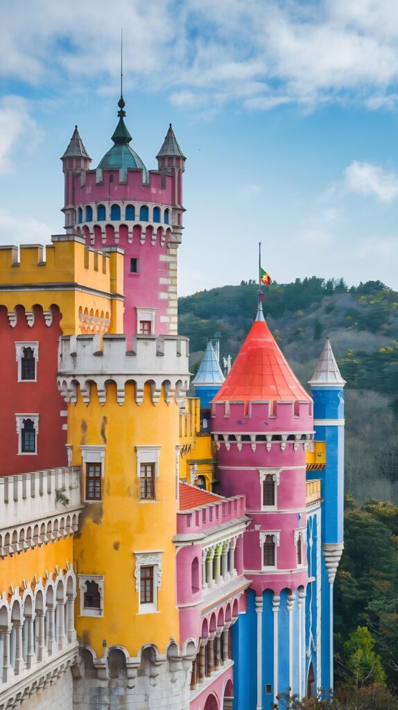 Ein weiteres Highlight ist der Pena-Palast, der oft als Märchenpalast bezeichnet wird. Auf einem hohen Felsvorsprung thronend, fasziniert er die Besucher mit seinen farbenfrohen Türmen und Terrassen, die sich deutlich vom blauen Himmel abheben. Jeder Winkel des Palastes bietet eine neue Perspektive auf seine fantastische Architektur, die von der Romantik des 19. Jahrhunderts inspiriert ist. Der Pena-Palast ist ein Symbol für die Alchemie aus Natur und Fantasie, die Sintra so einzigartig macht.