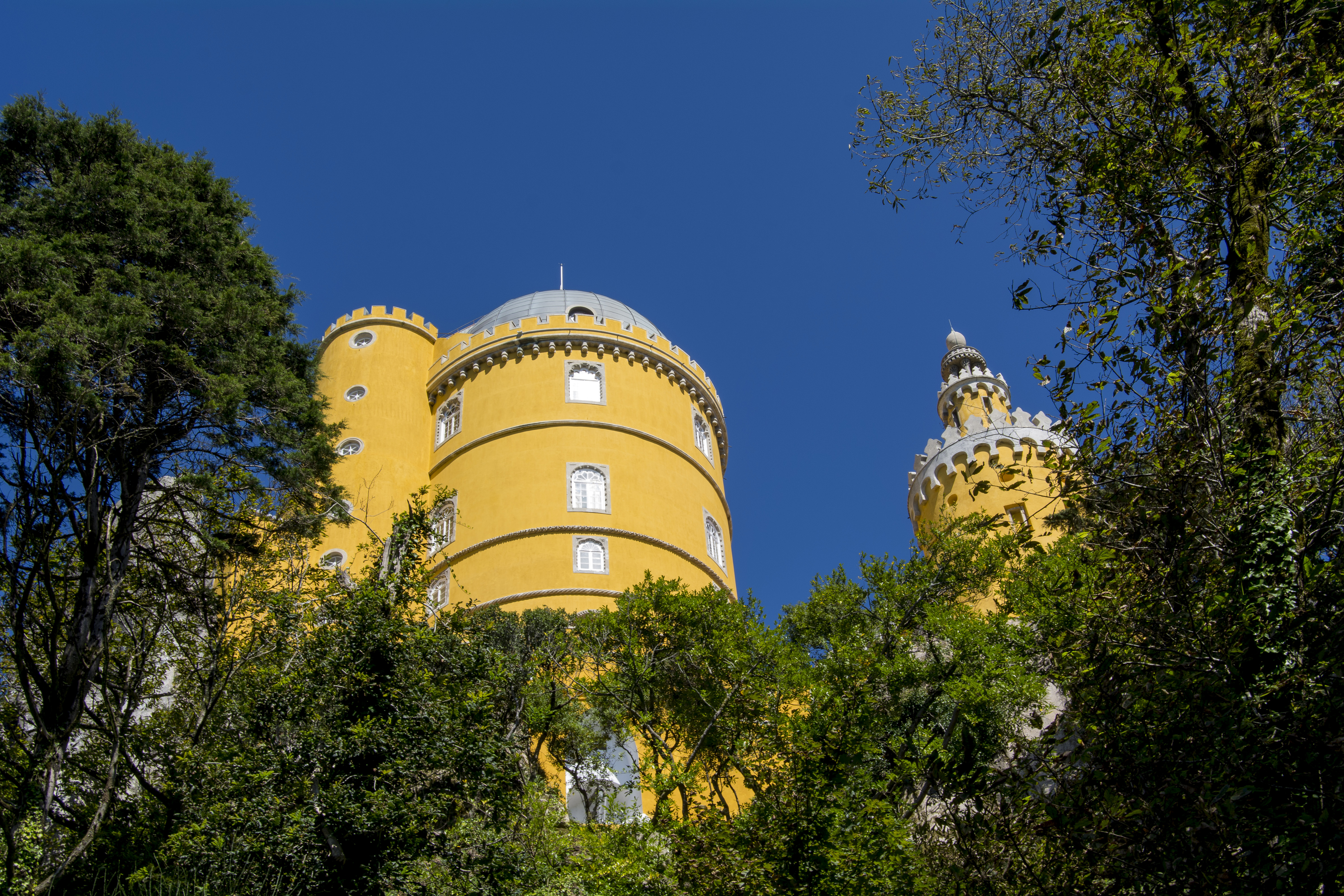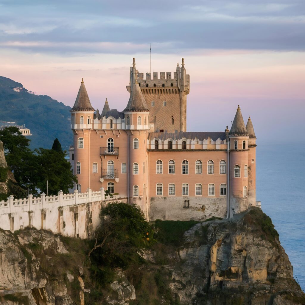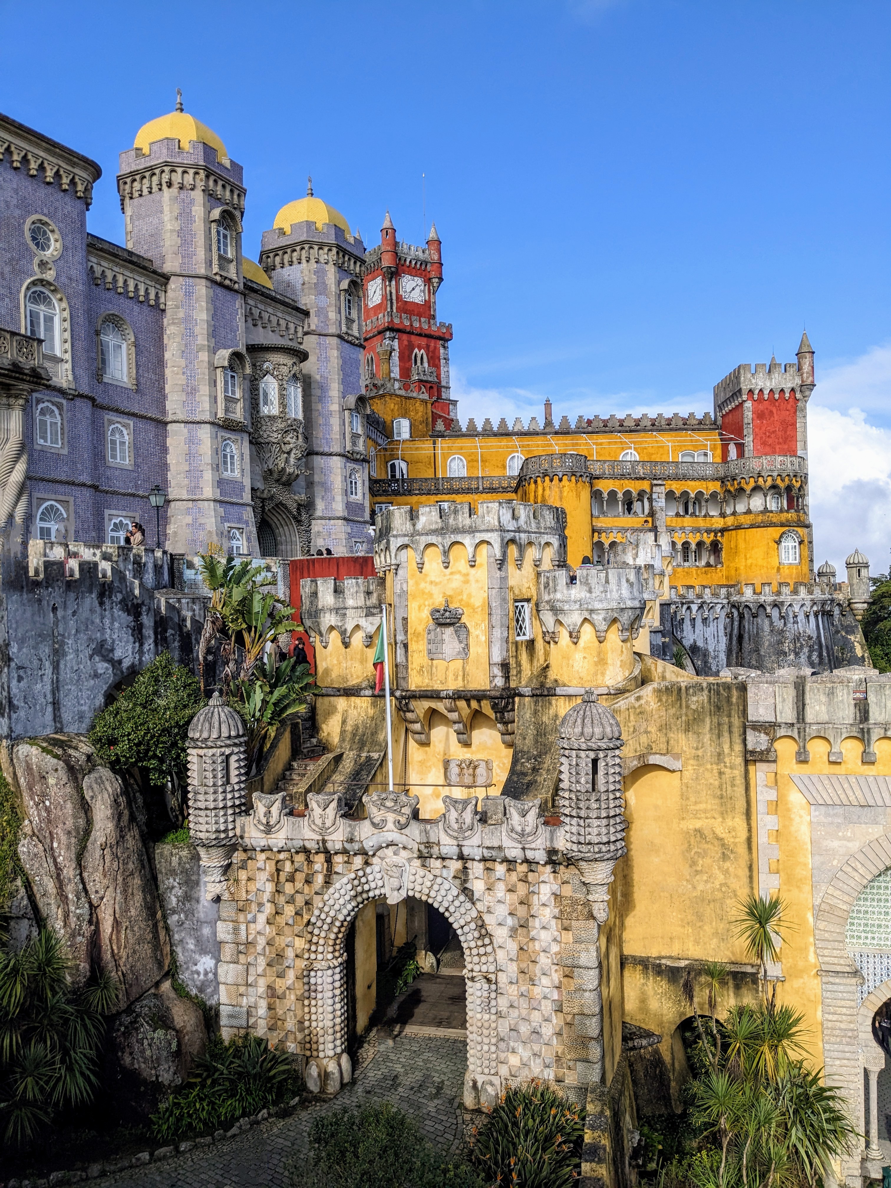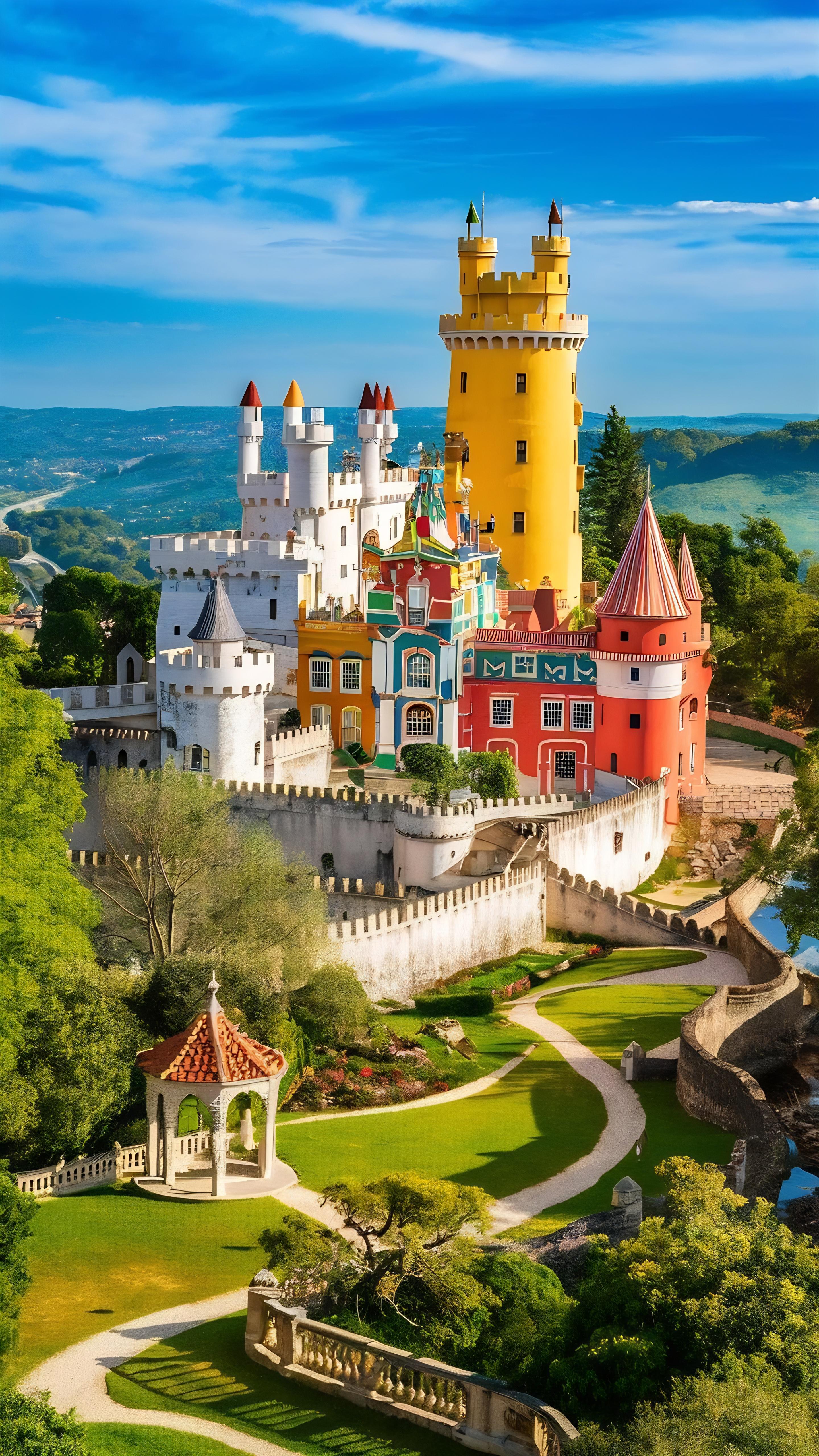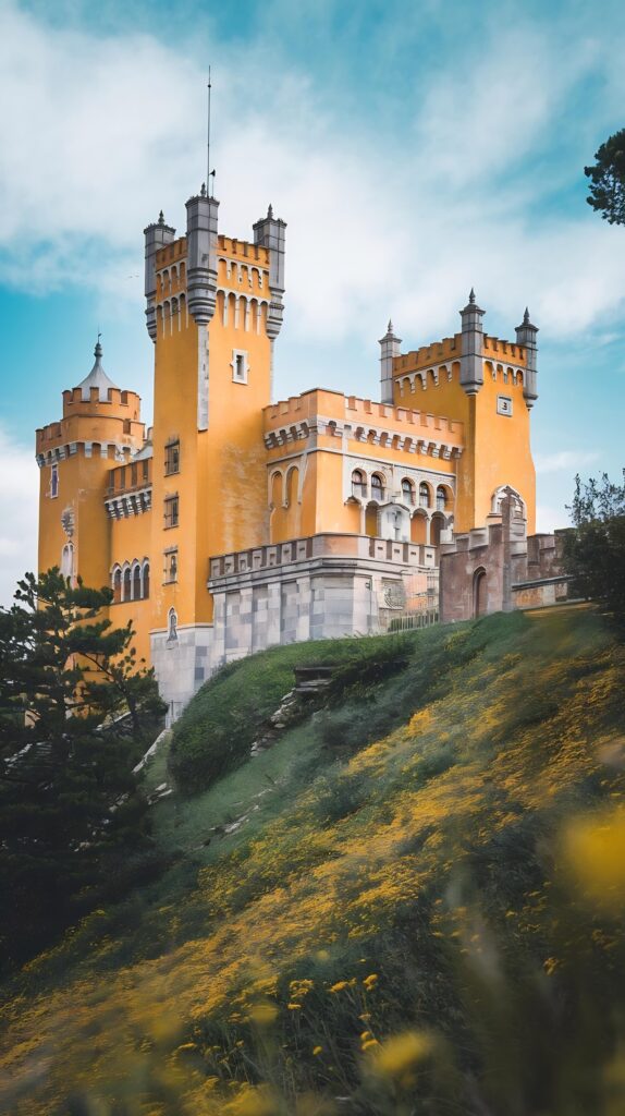 Ein weiteres Highlight ist der Pena-Palast, der oft als Märchenpalast bezeichnet wird. Auf einem hohen Felsvorsprung thronend, fasziniert er die Besucher mit seinen farbenfrohen Türmen und Terrassen, die sich deutlich vom blauen Himmel abheben. Jeder Winkel des Palastes bietet eine neue Perspektive auf seine fantastische Architektur, die von der Romantik des 19. Jahrhunderts inspiriert ist. Der Pena-Palast ist ein Symbol für die Alchemie aus Natur und Fantasie, die Sintra so einzigartig macht.