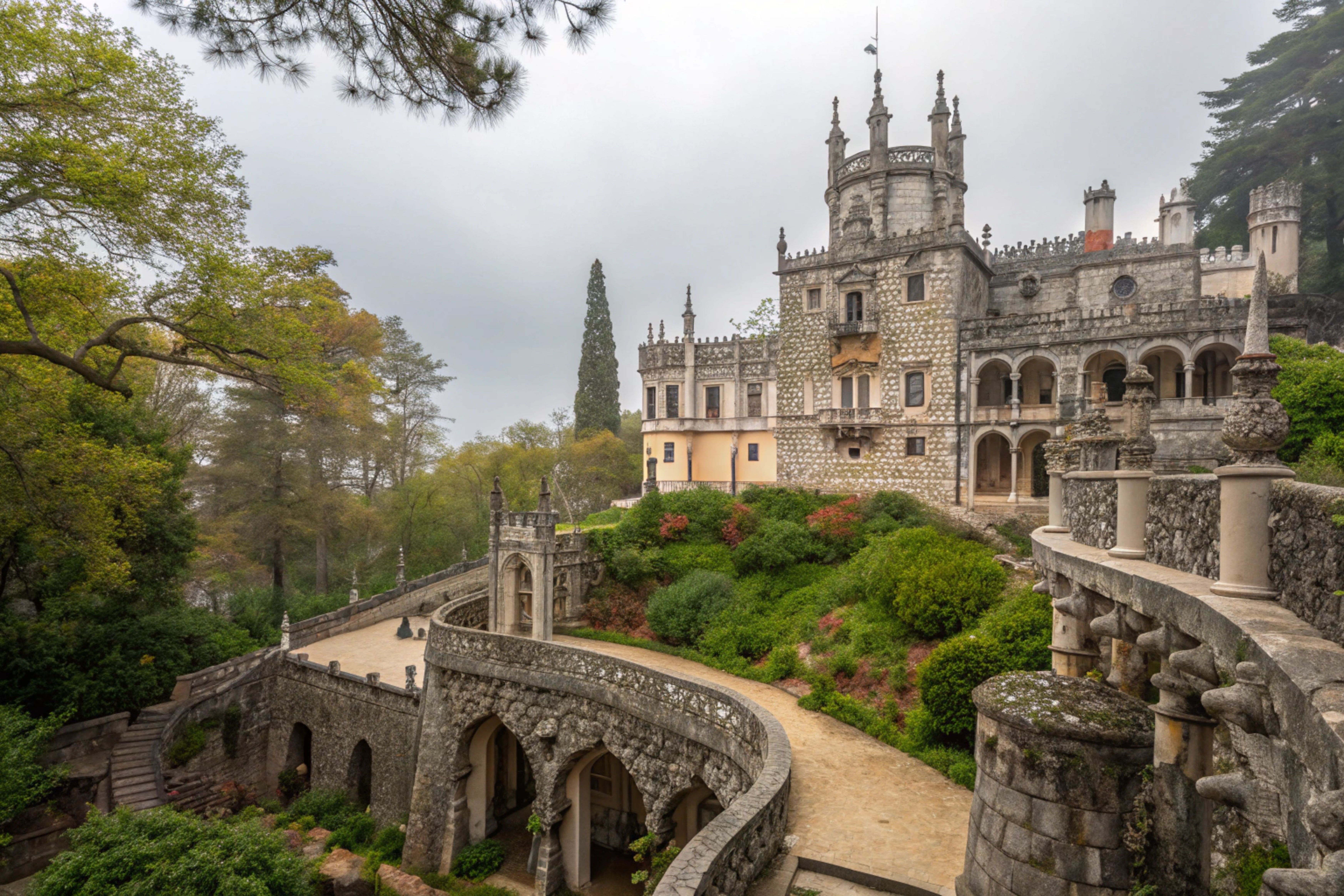 Der Palast von Monserrate erhebt sich majestätisch über dem grünen Tal und wird von vielen als einer der schönsten Paläste Europas angesehen. Ursprünglich im neomaurischen Stil erbaut, spiegelt seine Architektur die Vorliebe des 19. Jahrhunderts für die Romantik wider. Der britische Millionär Sir Francis Cook erwarb das Anwesen 1856 und verwandelte es in ein traumhaftes Anwesen, das Besucher aus aller Welt begeistert. Mit seiner spektakulären Kuppel, aufwendigen Mosaiken und prächtigen Gärten bietet der Palast ein Erlebnis, das alle Sinne anspricht.
