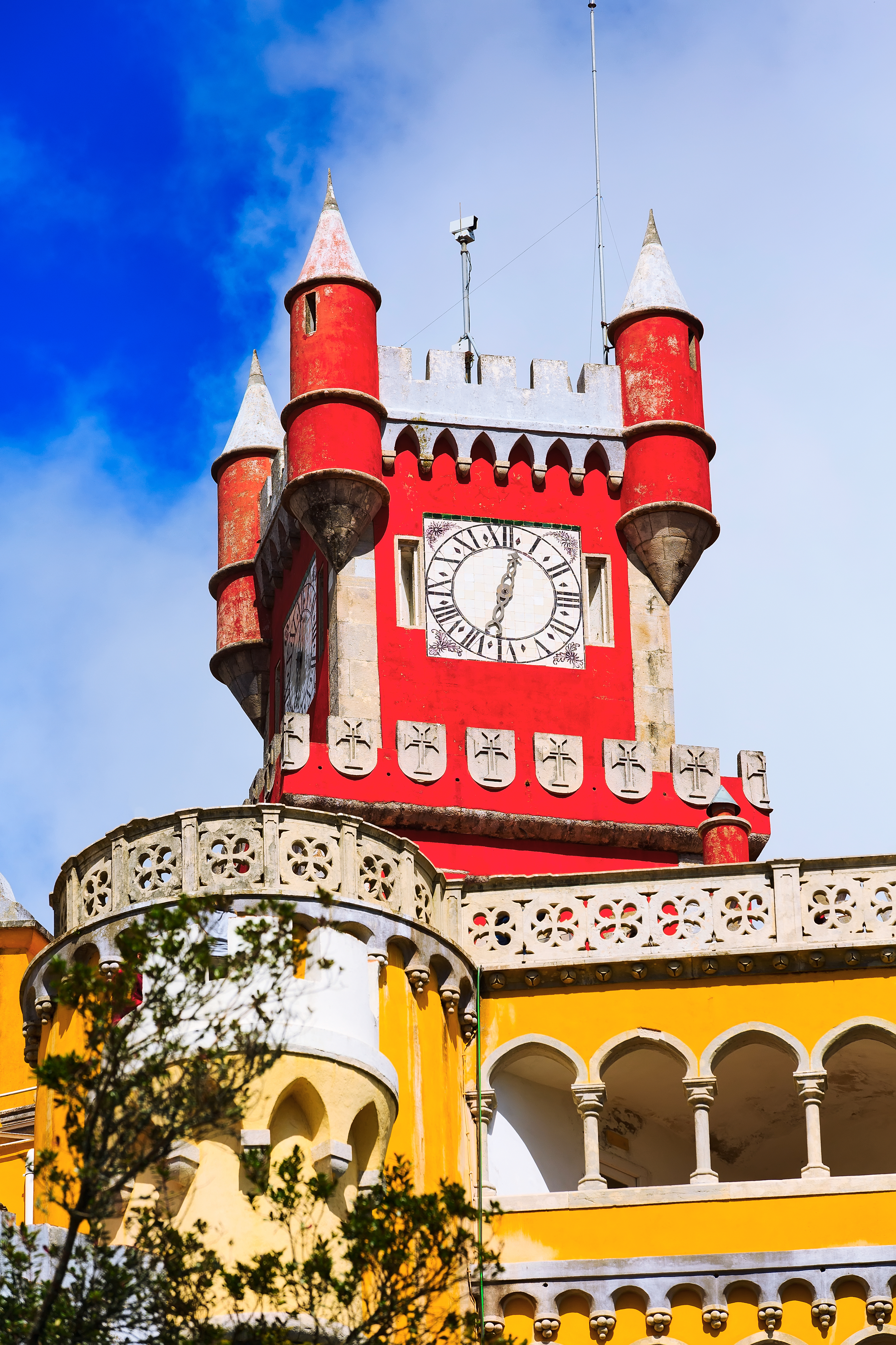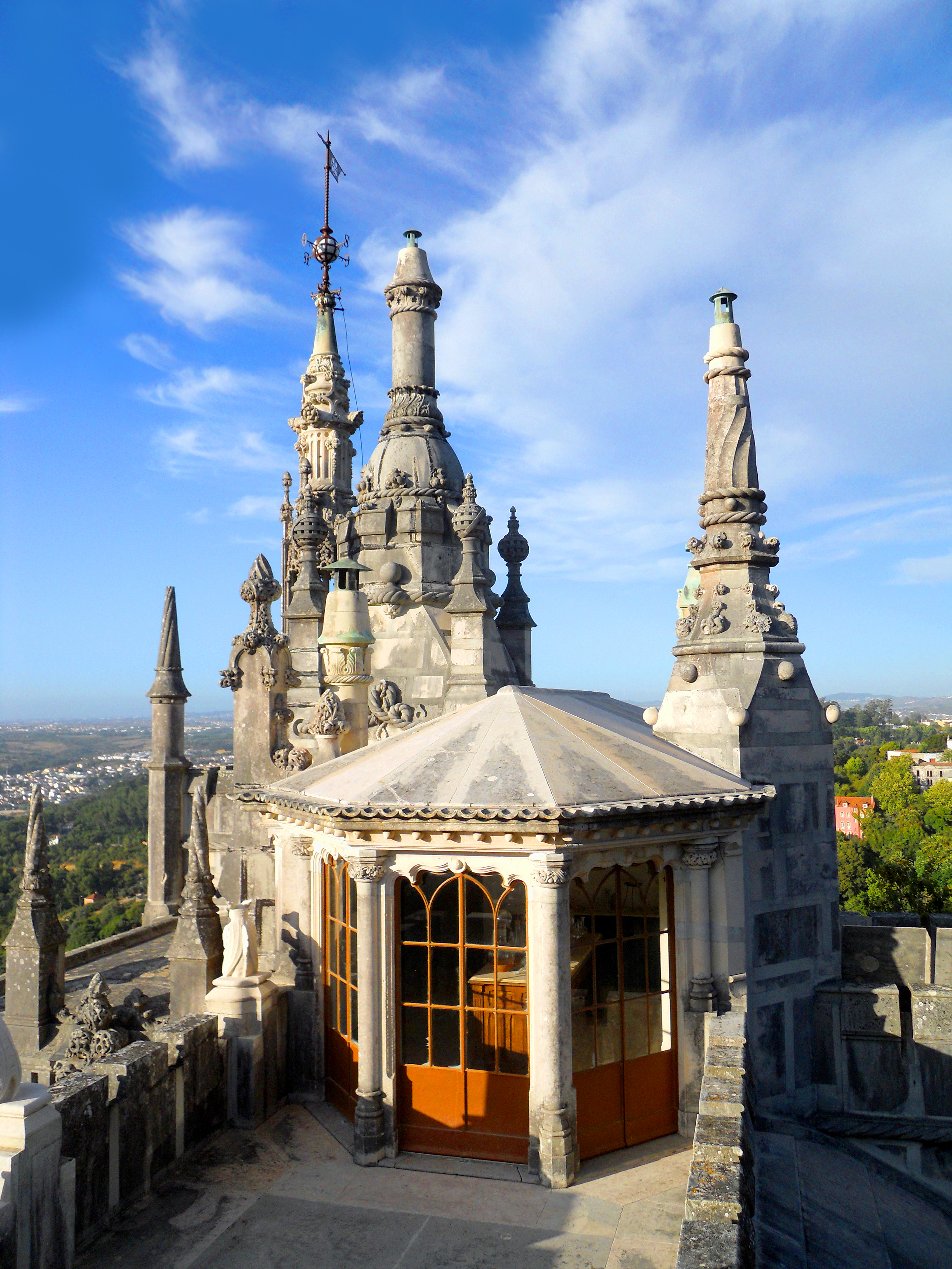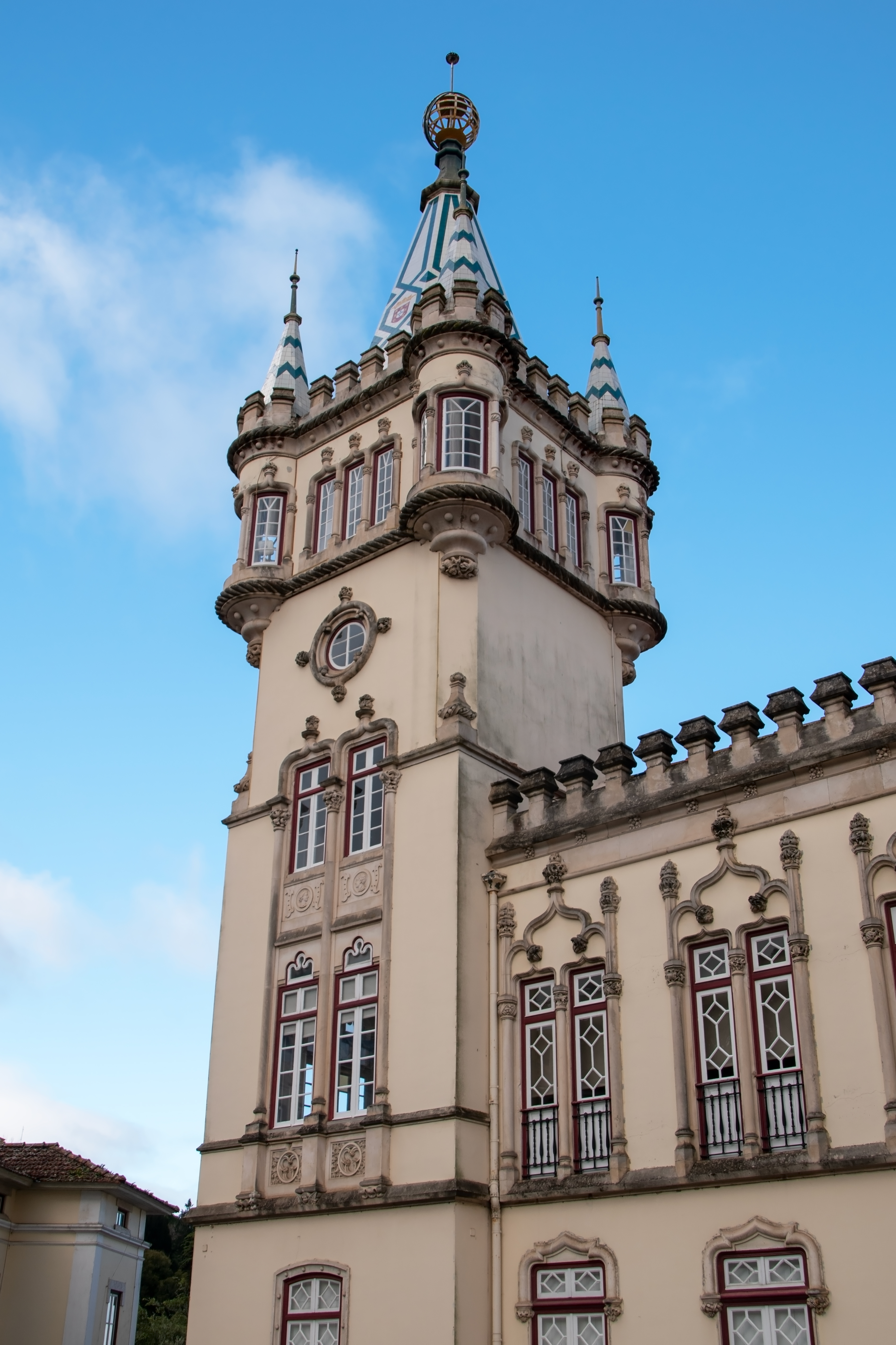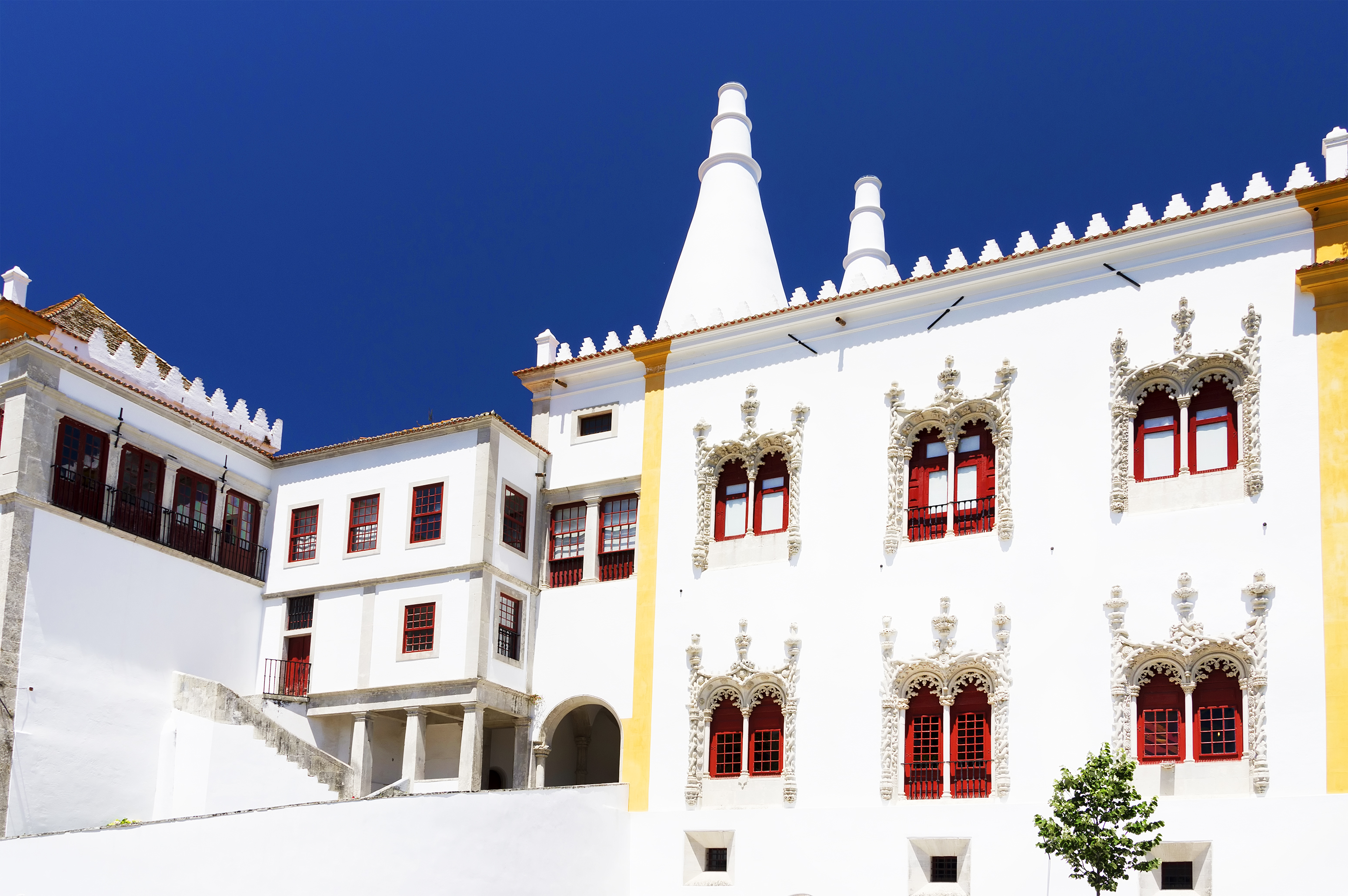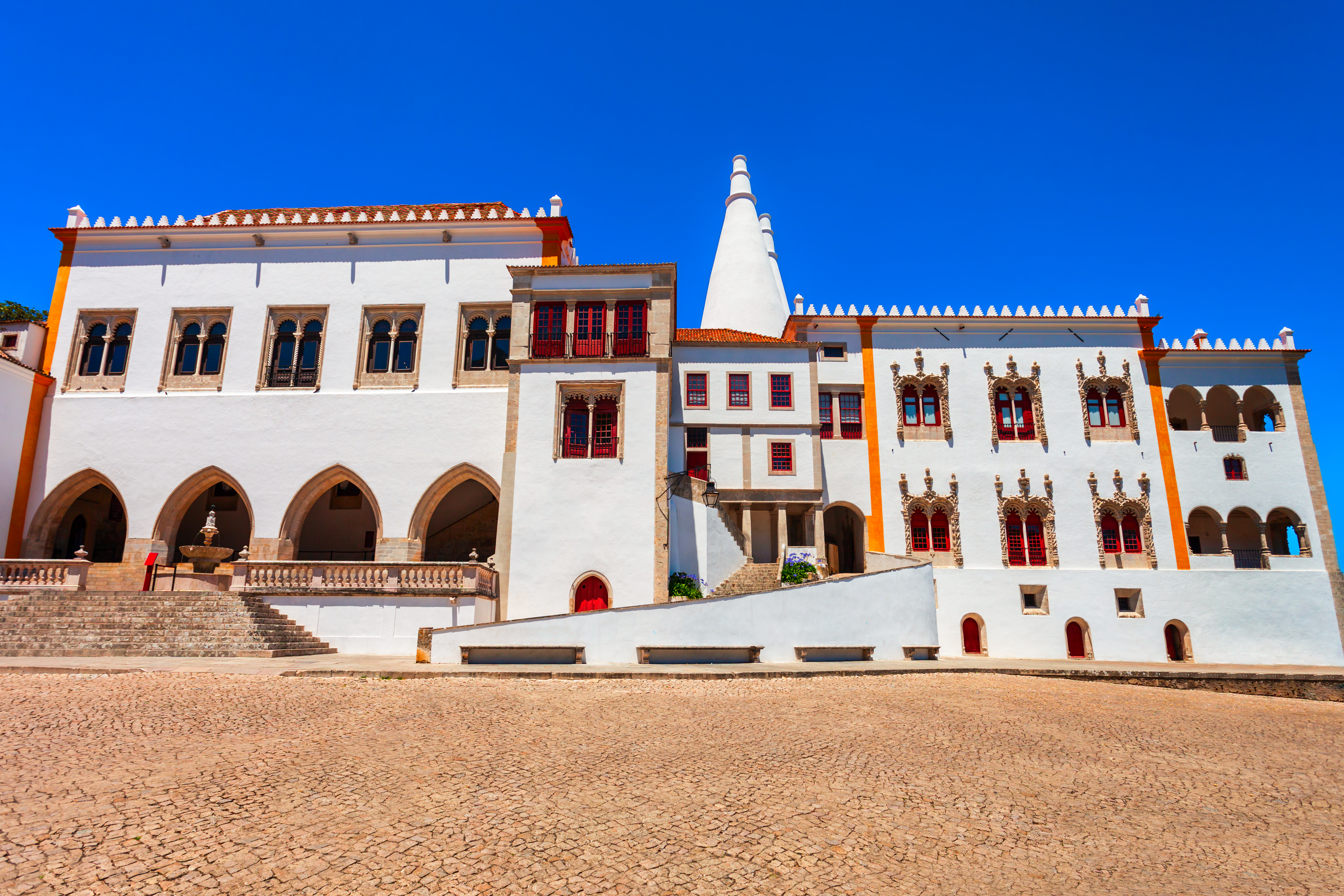 Besonders beeindruckend sind die beiden kegelförmigen Schornsteine, die ungewöhnlich hoch in den Himmel ragen und schon von weitem sichtbar sind. Sie sind das charakteristische Wahrzeichen dieses Palastes und stammen aus dem 14. Jahrhundert, als König Johann I. die ursprüngliche maurische Burg in eine königliche Residenz umbauen ließ. Die Innenräume zeugen von der bewegten Geschichte der portugiesischen Königsfamilie und spiegeln die verschiedenen Einflüsse wider, die das Land im Laufe der Jahrhunderte geprägt haben, darunter Gotik, Renaissance und Manuelinik.