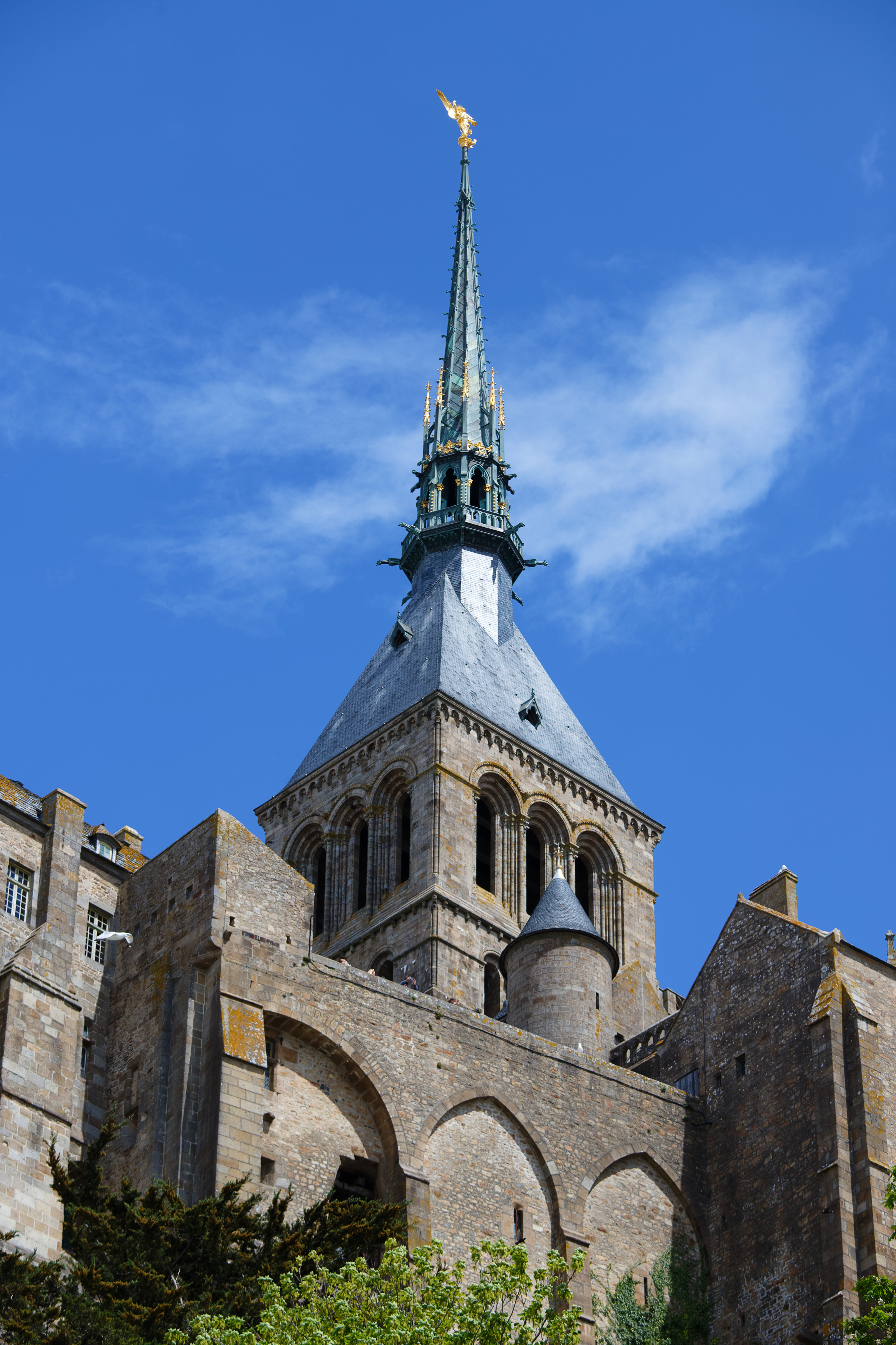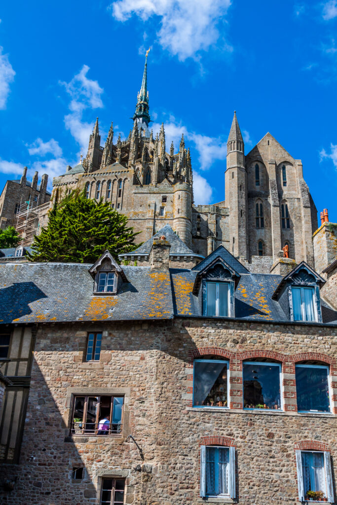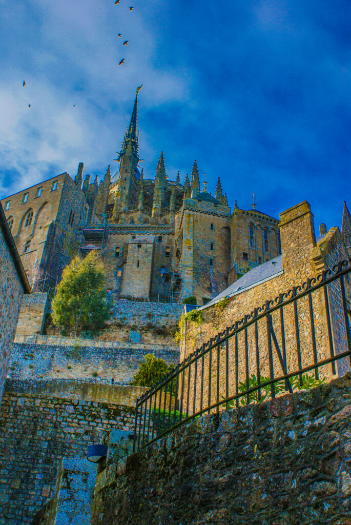 Von der spirituellen Zuflucht zur Festung – Was als bescheidene religiöse Einrichtung begann, verwandelte sich im Laufe der Jahrhunderte in eine imposante Abtei im normannischen Baustil. Die Benediktinermönche, die ab 965 das Kloster belebten, machten den Ort nicht nur zu einem Zentrum des Glaubens, sondern auch zu einer wichtigen Pilgerstätte. Die turbulente Geschichte der Region, einschließlich der ständigen Bedrohung durch Wikinger und politischer Instabilität, verstärkte die strategische Bedeutung des Mont-Saint-Michel. Im 13. Jahrhundert finanzierte der französische König Philippe Auguste den Ausbau der Abtei im gotischen Stil, bekannt als „La Merveille”. Trotz ihrer Abriegelung während des Hundertjährigen Krieges widerstand die Festung den englischen Angriffen und blieb ein Symbol für unerschütterlichen Glauben und Architektur.