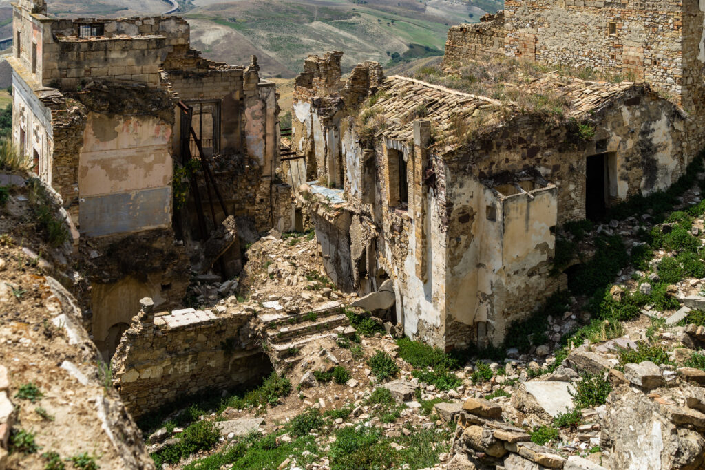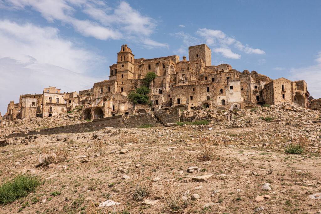 Die schlimmste Prüfung stand jedoch noch bevor. In den 1960er Jahren begannen schwere Erdrutsche, verursacht durch starke Regenfälle und die seismische Instabilität der Region, ganze Häuser wegzuspülen. Der Boden unter der Stadt brach immer weiter ein, und es schien, als würde Craco jeden Moment in den Abgrund stürzen. Verzweifelt und ohne Hoffnung auf ein sicheres Leben verließen die letzten Bewohner Craco schließlich 1963. Was übrig blieb, war eine Stadt, die von den Schatten ihrer Vergangenheit heimgesucht wurde.