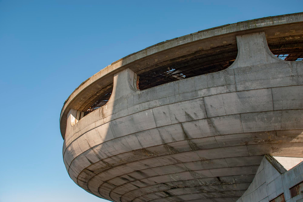 Architektonische Bedeutung und Symbolik – Die Gestaltung des Buzludzha-Denkmals ist ein Paradebeispiel für die brutalistische Architektur, die in der zweiten Hälfte des 20. Jahrhunderts weltweit an Popularität gewann. Dieser Stil zeichnet sich durch massive Formen und die Verwendung von Beton als Hauptmaterial aus. Die Kombination aus künstlerischen Elementen und funktionaler Architektur spiegelt die Ambitionen und den Optimismus jener Zeit wider. Besonders bemerkenswert ist der rote Stern auf der Spitze des Turms des Denkmals. Mit einem Durchmesser von etwa zwölf Metern war er einer der größten und prächtigsten Sterne, die je angebracht wurden. In der Symbolik der kommunistischen Ideologie steht der rote Stern für internationale Solidarität und den Triumph des Sozialismus. Heute jedoch, mehr als drei Jahrzehnte nach dem Fall des Kommunismus in Bulgarien, ist dieses Symbol politisch höchst umstritten und wird oft mit einem dunklen Kapitel in der Geschichte des Landes in Verbindung gebracht.