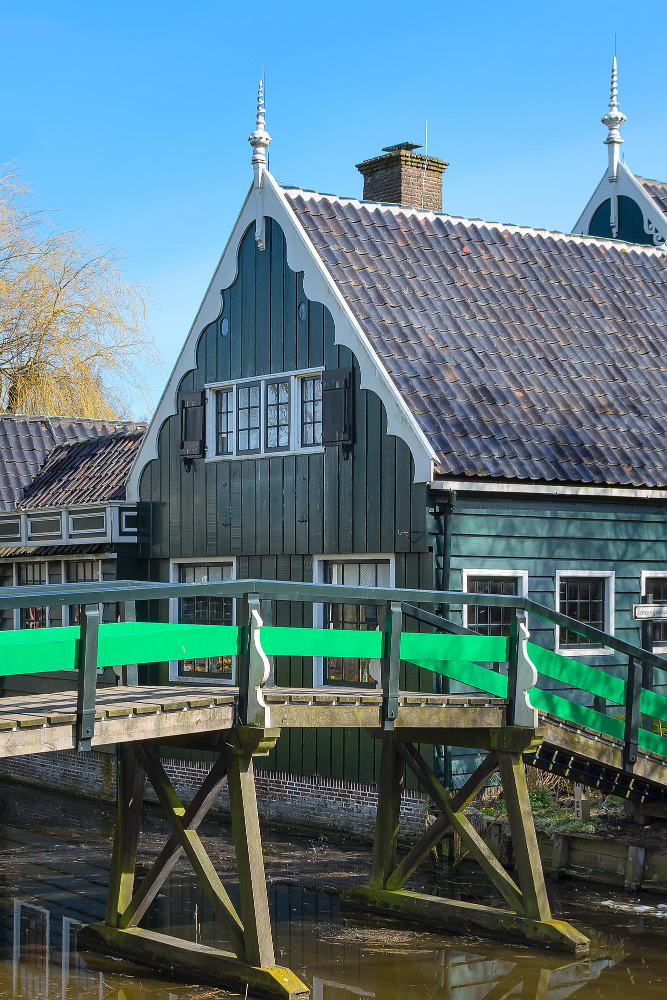 Historische Gebäude und ihr Charme – Die Windmühlen sind zweifellos die Hauptattraktionen, aber Zaanse Schans hat darüber hinaus noch viel mehr zu bieten. Die malerischen Holzhäuser, von denen einige aus dem 17. und 18. Jahrhundert stammen, wurden aus der Umgebung hierher gebracht, um die Atmosphäre eines typischen Zaan-Dorfes nachzubilden. Jedes Haus erzählt seine eigene Geschichte. Viele von ihnen beherbergen heute Museen, Geschäfte oder Cafés, die einen Einblick in das Leben vergangener Zeiten bieten. Ein Highlight ist das Zaans Museum, ein moderner Ausstellungsraum, der die Geschichte und Kultur der Region präsentiert. Wir empfehlen wärmstens einen Besuch der berühmten „Verkade Experience“, die Teil des Museums ist. Hier erfahren Besucher alles über die traditionelle Schokoladen- und Keksherstellung in der Verkade-Fabrik, einer Marke, die in den Niederlanden nach wie vor für Qualität steht. Die interaktiven Exponate sind nicht nur informativ, sondern auch so gestaltet, dass sie für Familien mit Kindern spannend sind.